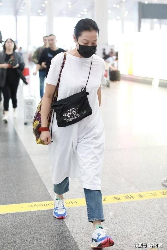 — 刘若英变胖了更美,穿长款白T恤+牛仔裤走机场,素颜状态太年轻 —