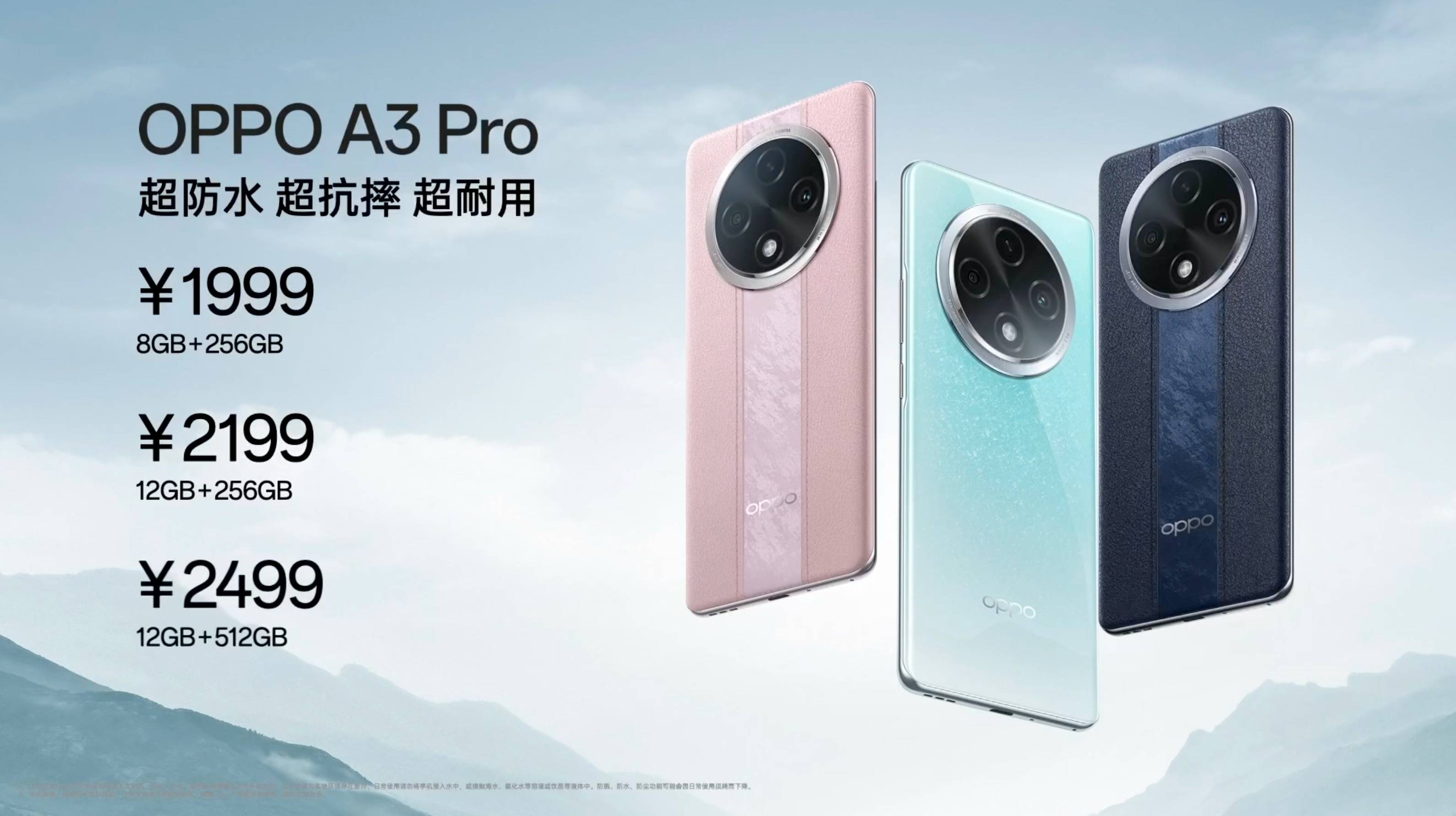 — 满级防水手机OPPO A3 Pro发布,售价1999元起 —