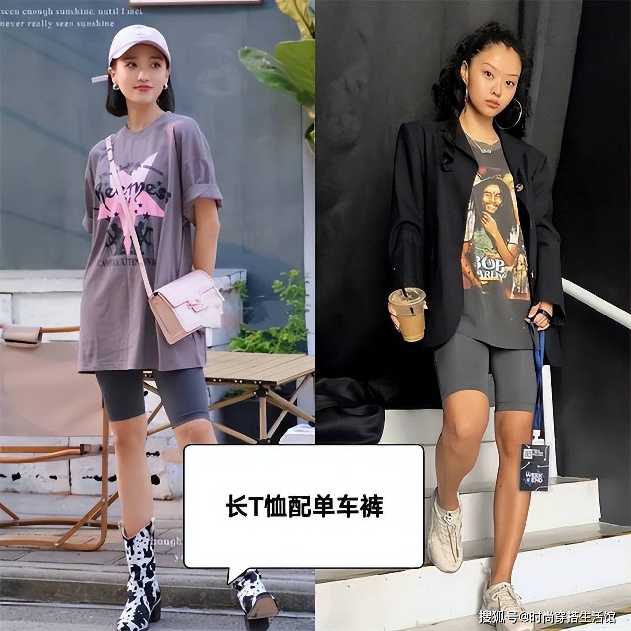 — 今春火了一种穿法叫:“长T+单车裤”,既洋气又显高,适合小个子 —