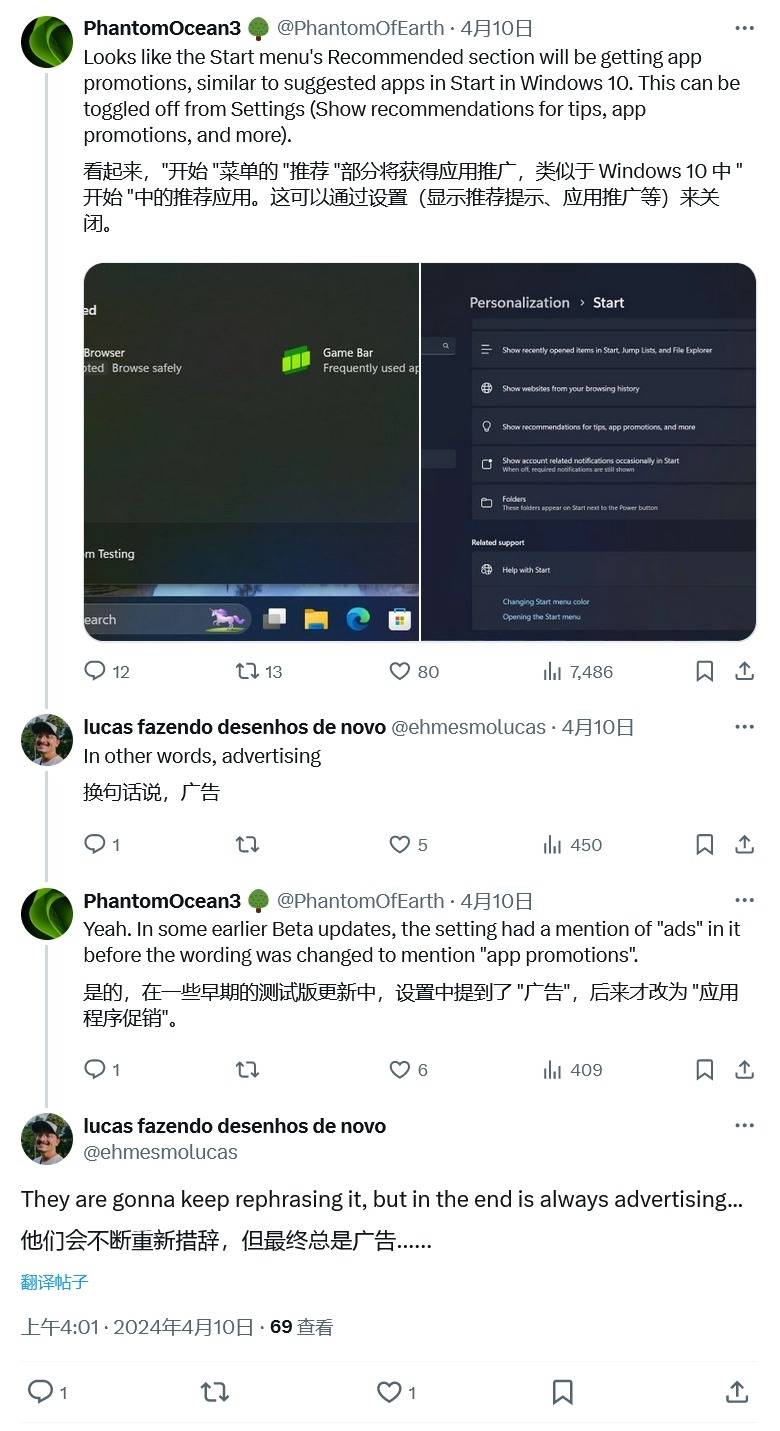 — 微软修改Win 11开始菜单,“推荐”区域将新增应用推广内容 —