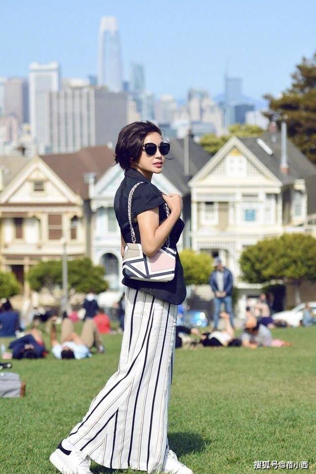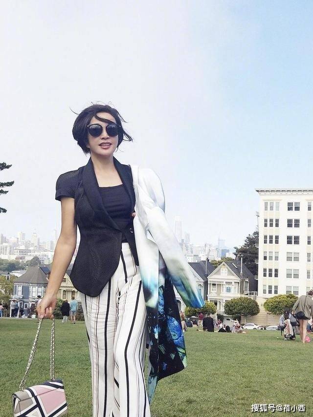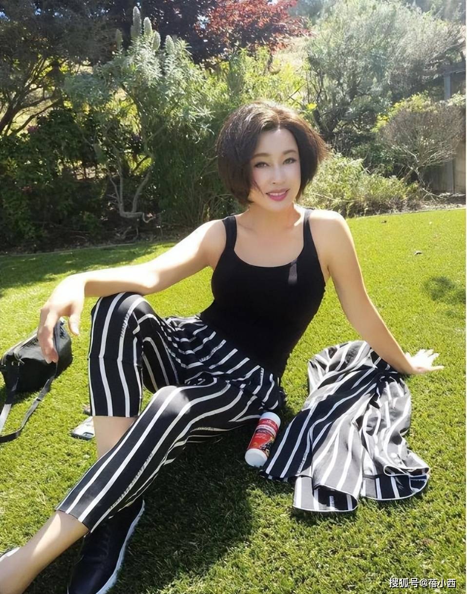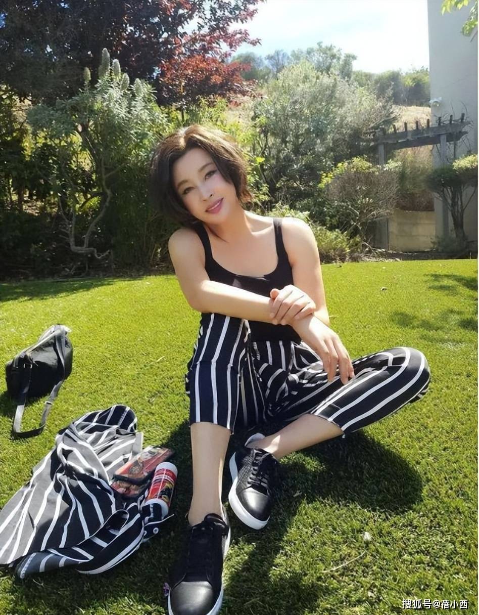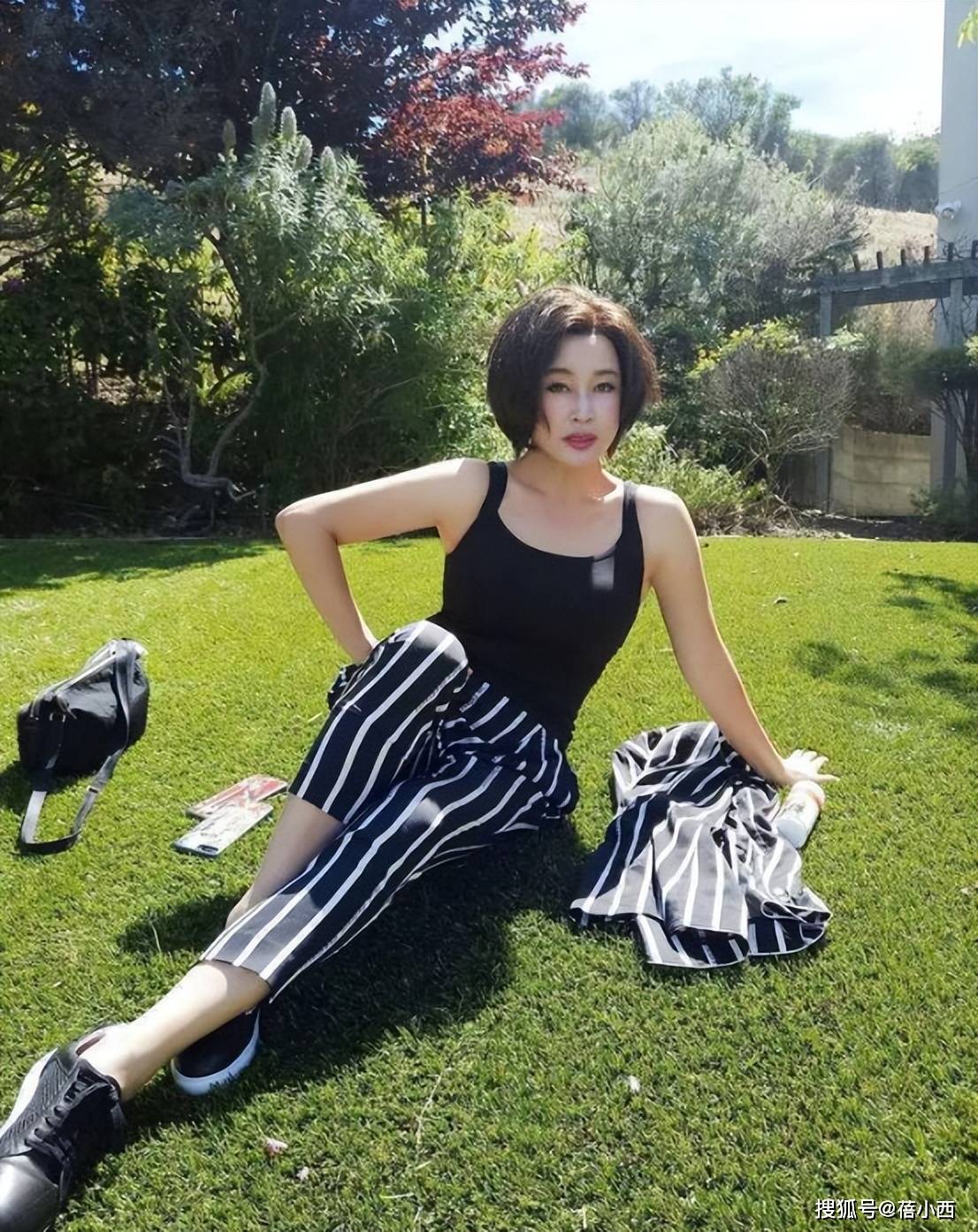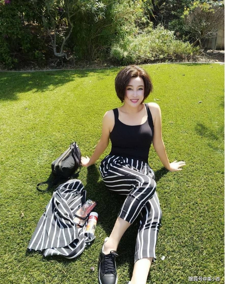 — 刘晓庆在草地上自拍!穿吊带衫+条纹裤像个“美少妇”,让人心动 —