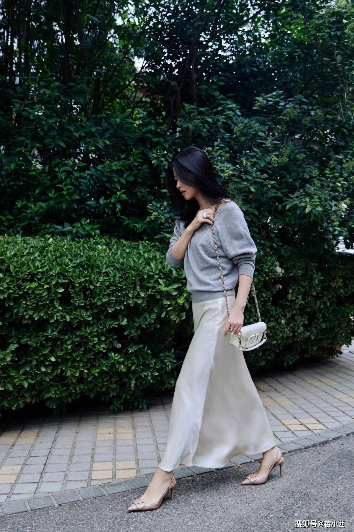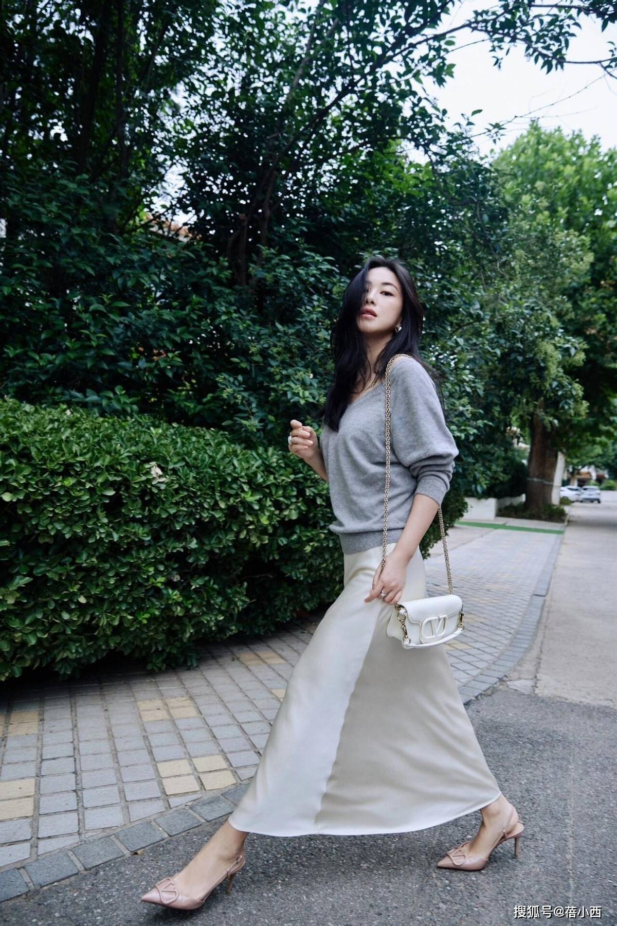 — 朱珠带火了一种高级色穿法:灰色针织衫+白色半身裙,时髦又洋气 —