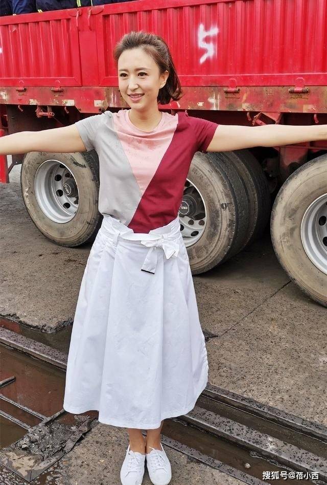 — “张蕾”终于改风格,穿拼接T恤+半身裙录节目,扎高马尾像大学生 —