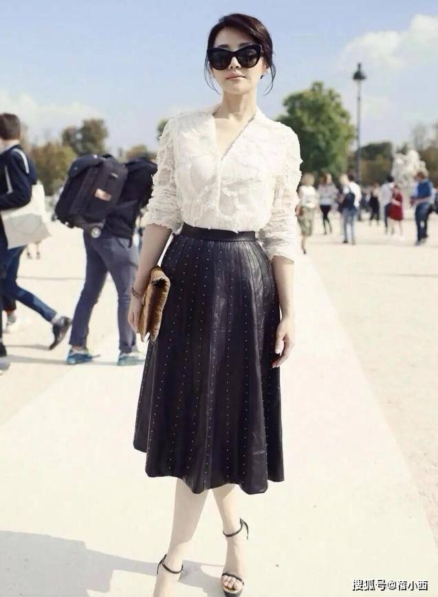 — 看了许晴的白衬衫穿搭!我悟了:不配阔腿裤,配半身裙才高级好看 —