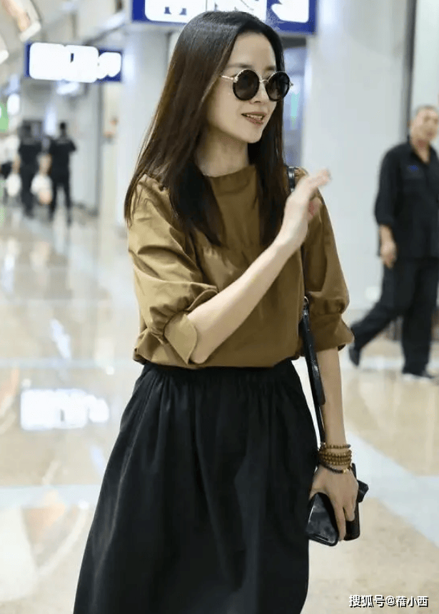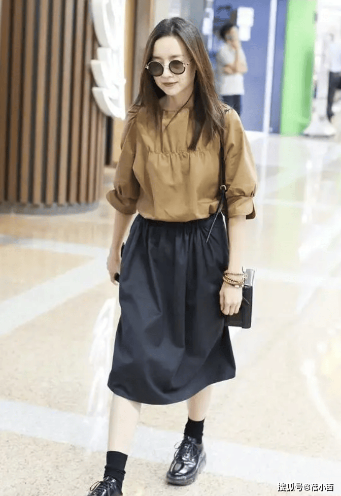 — 80斤的董洁又带火了美拉德穿搭:衬衫+半身裙+乐福鞋,高级又洋气 —