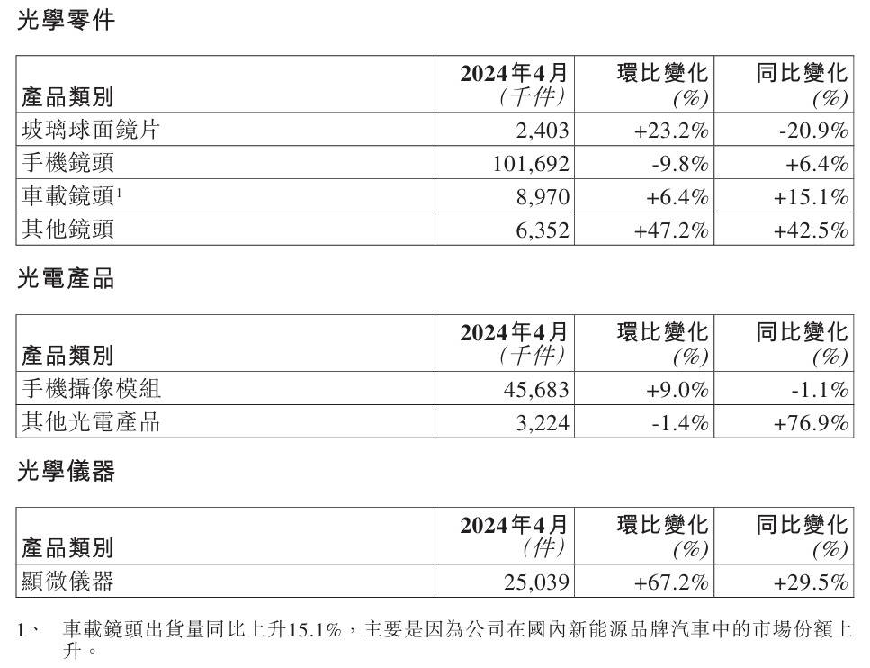 — 舜宇科技手机镜头出货量增长,车载镜头市场份额上升 —