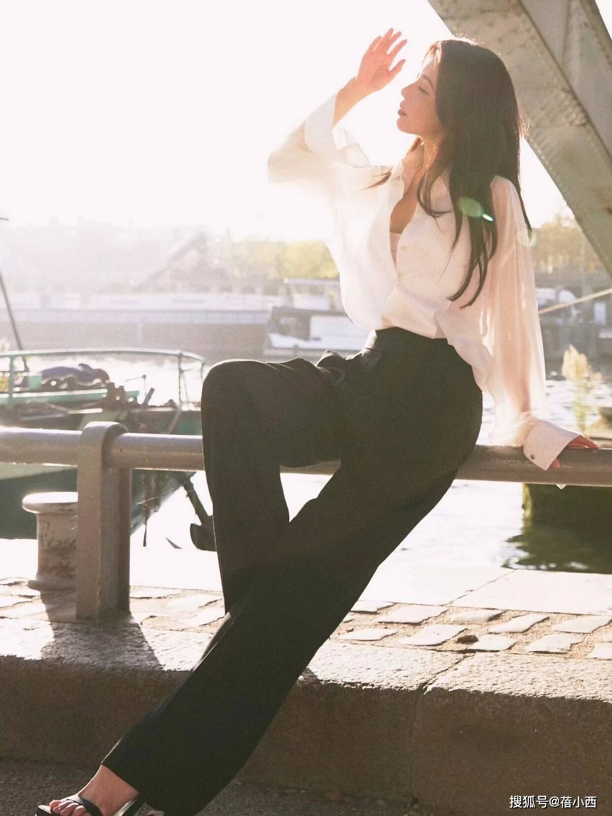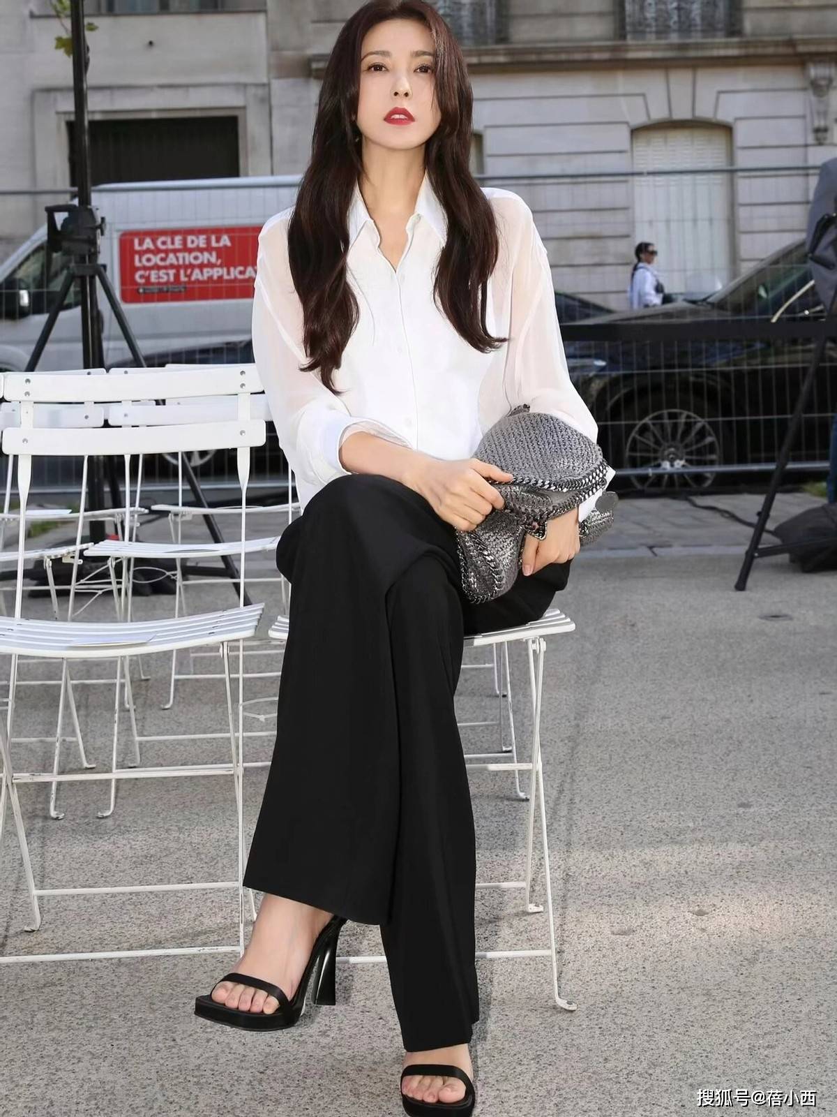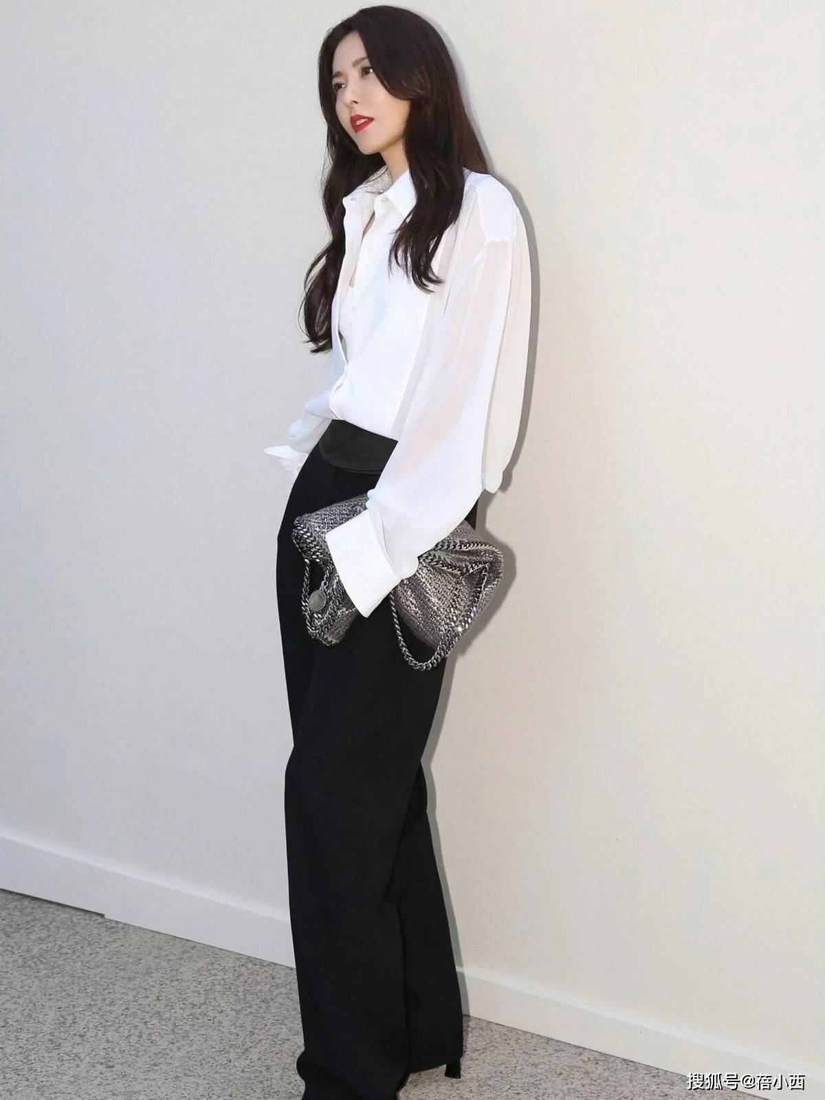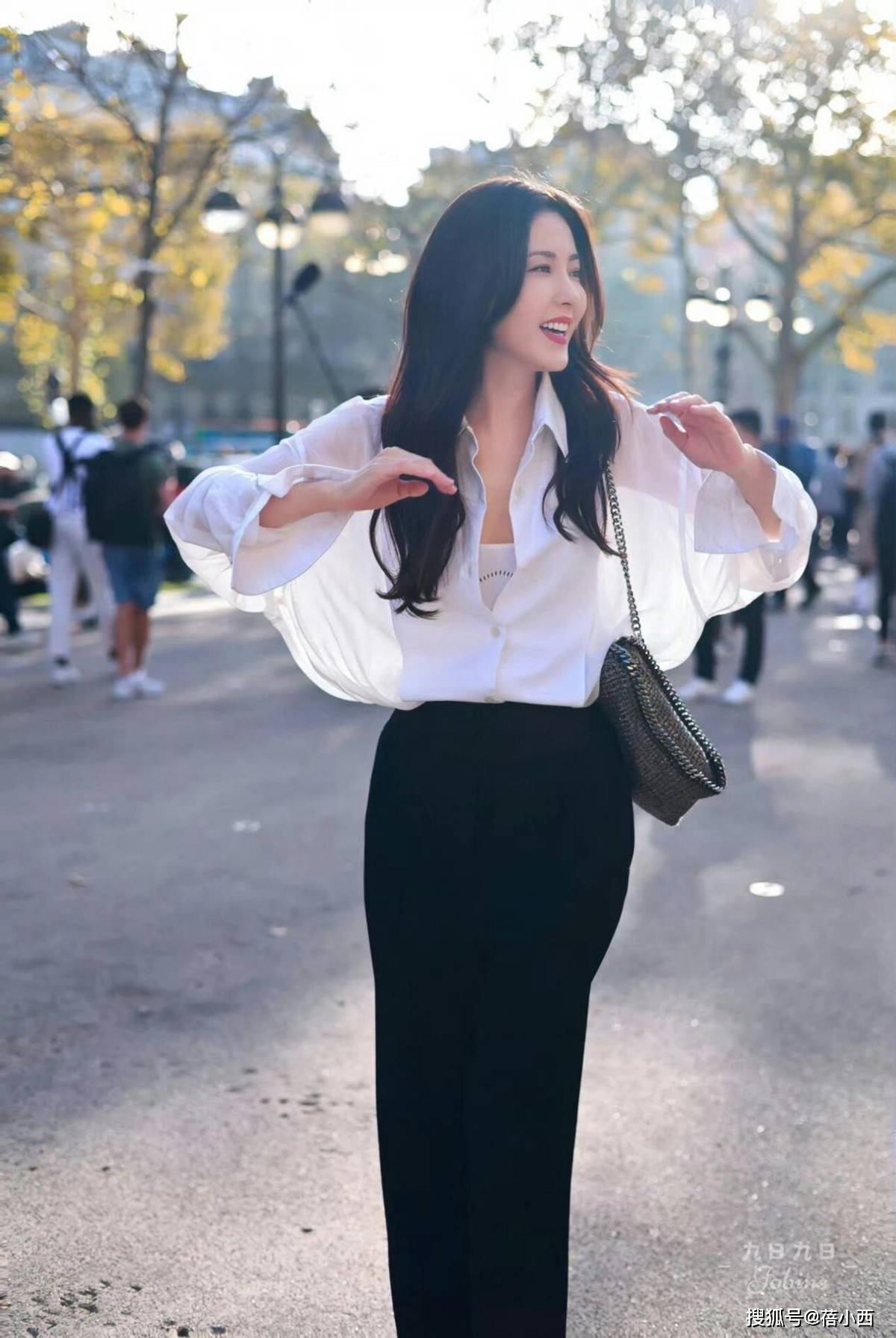— 曾黎和朱珠在国外同框!穿白衬衫+黑色阔腿裤+长卷发,高级又显贵 —