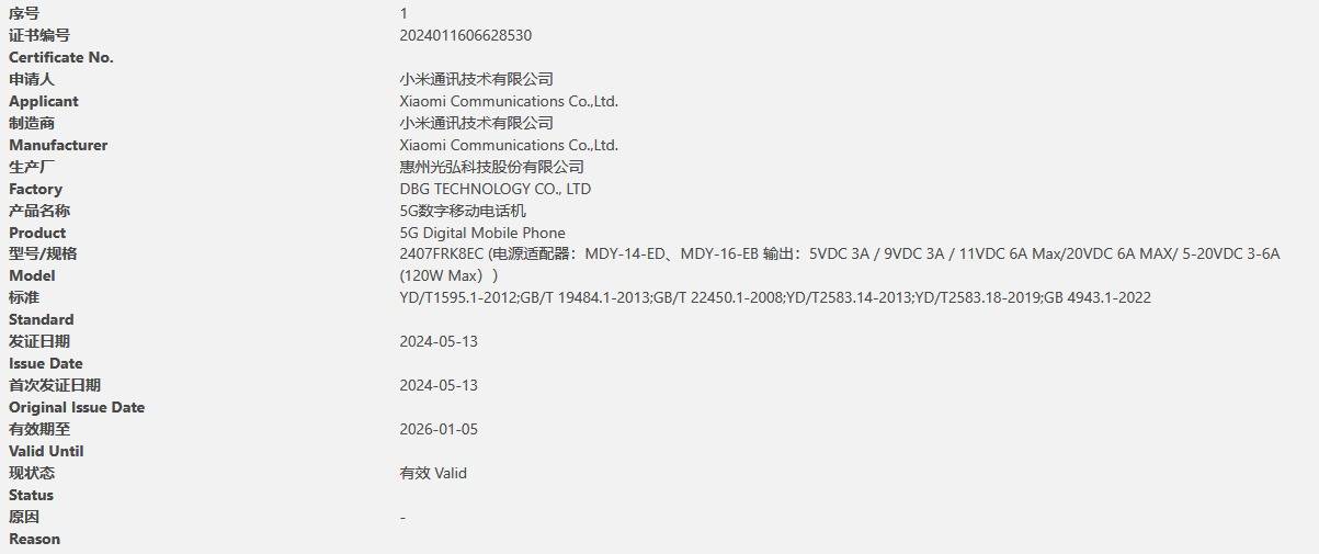 — Redmi K70 Ultra通过3C认证:支持120W快充和超大电池 —