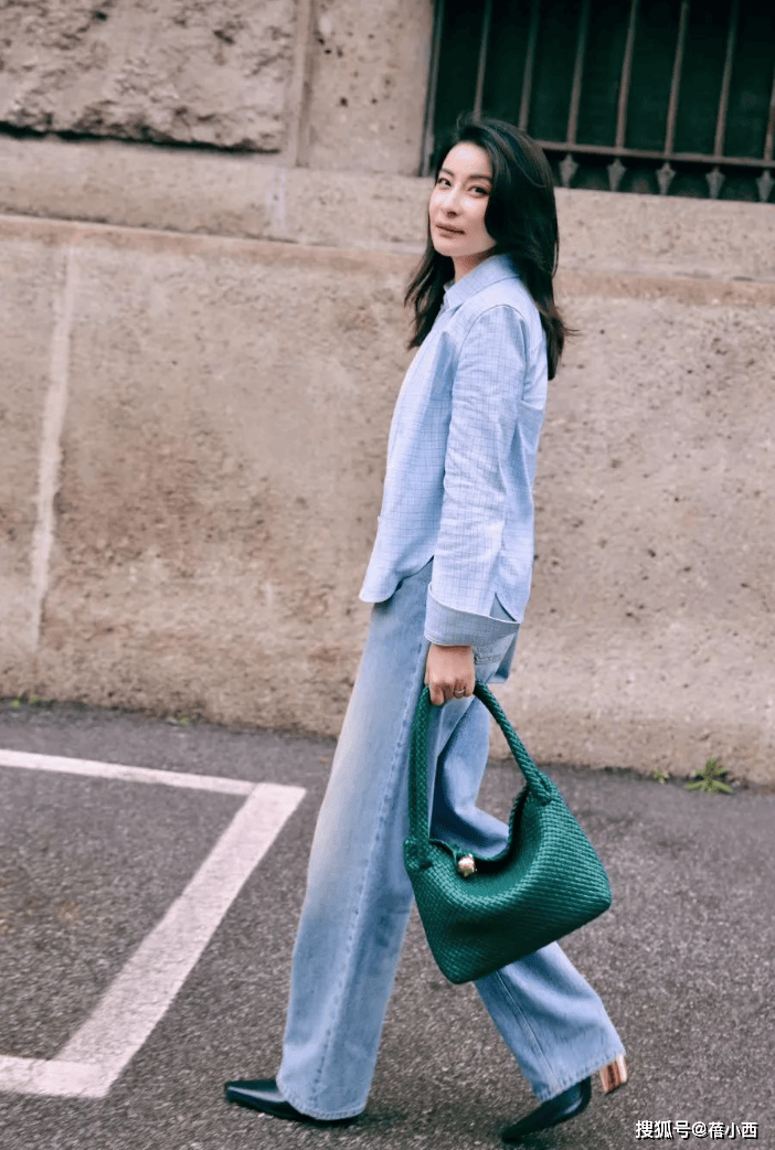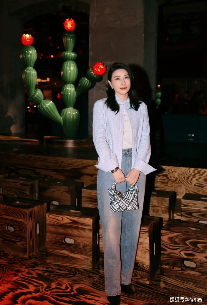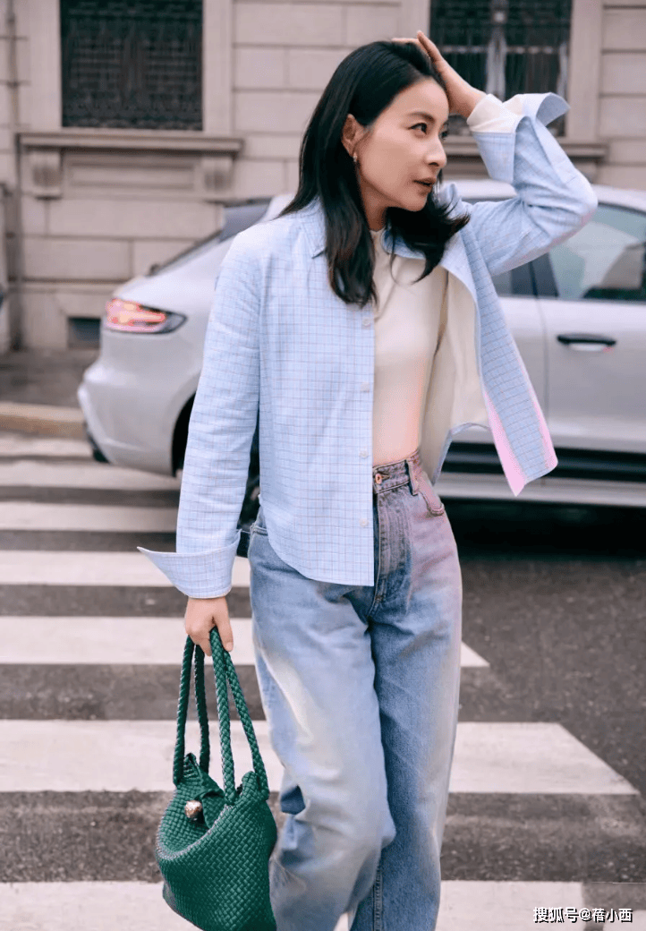 — 郭晶晶在国外终于时髦一回!穿衬衫+打底衫+牛仔裤,简约又显贵 —