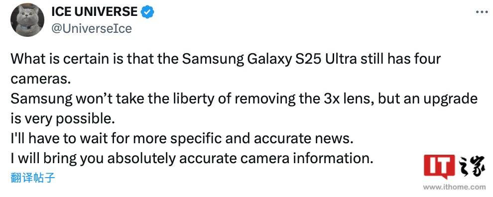 — 消息称三星Galaxy S25 Ultra手机保持原有摄像方案,并升级传感器 —