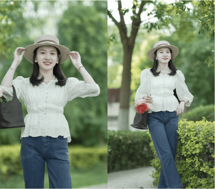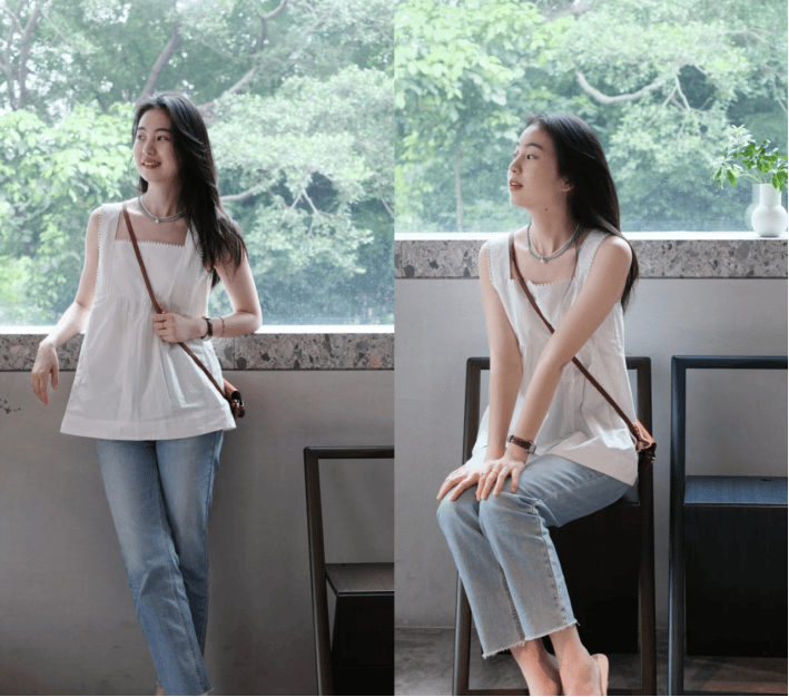 — 夏天裤子不必多买,但是蓝色牛仔裤一定要有,百搭清爽又减龄 —