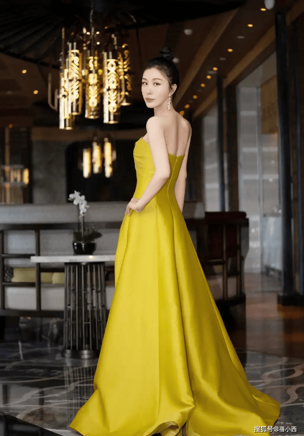 — 被王石的娇妻田朴珺惊艳到!穿黄色抹胸裙变"水蜜桃",性感又迷人 —