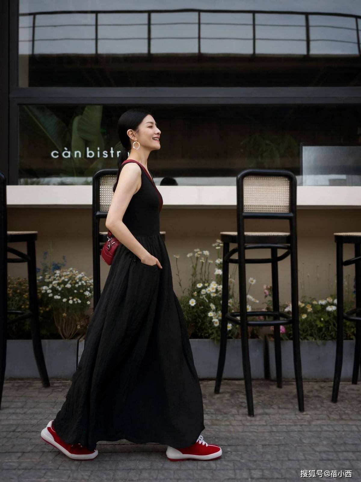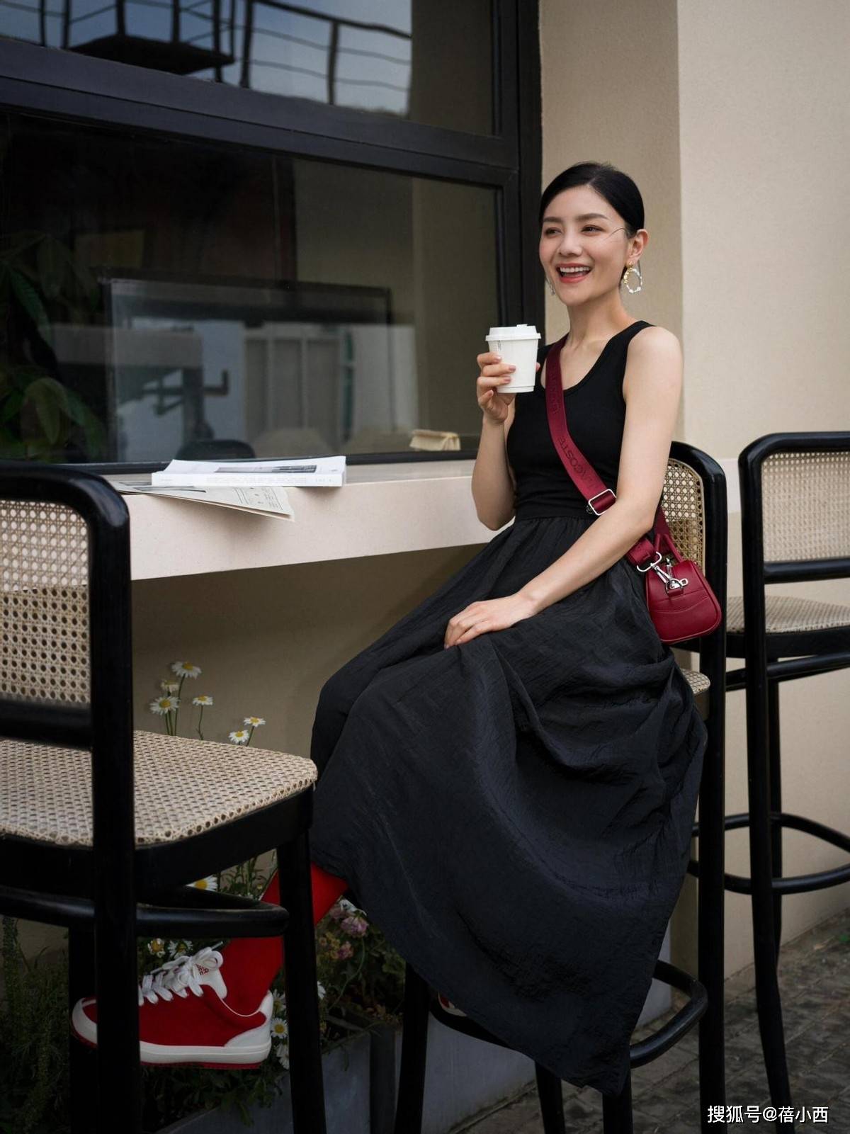 — 48岁胡可把“小黑裙”穿火了!搭配红包+红鞋子,高级时髦又洋气 —
