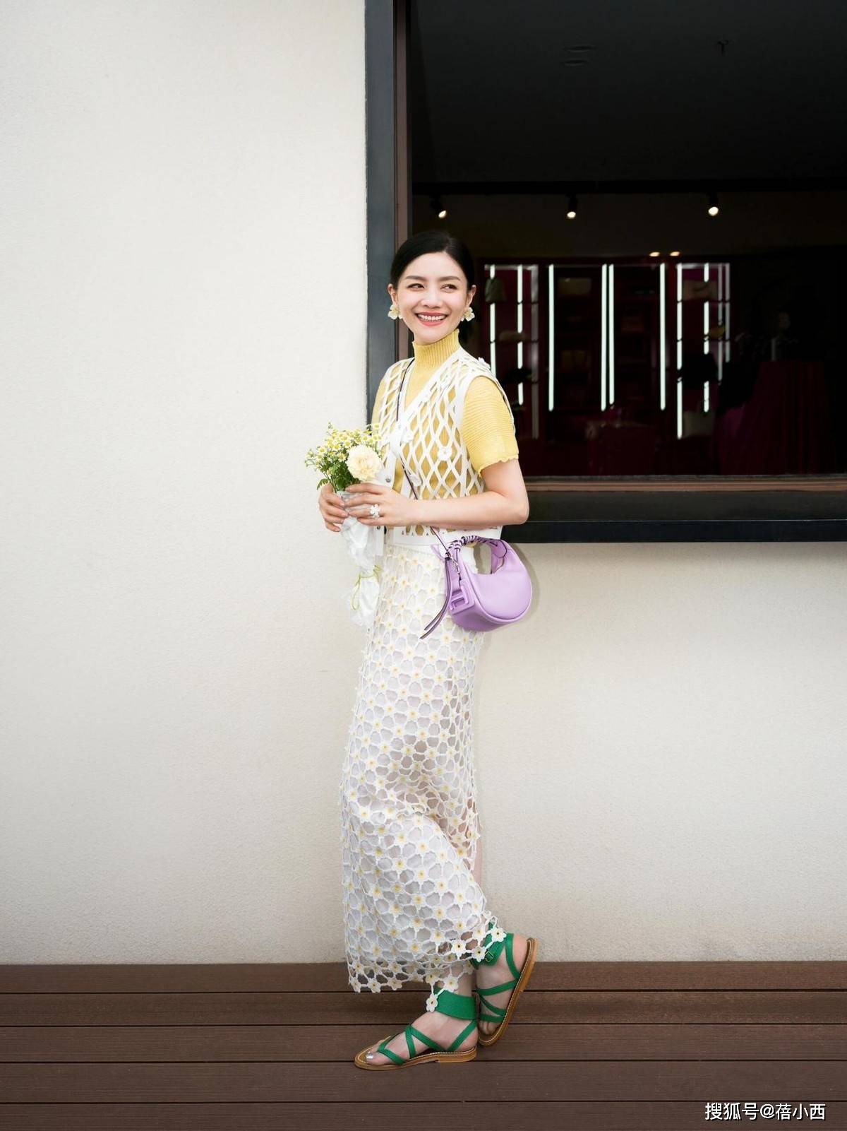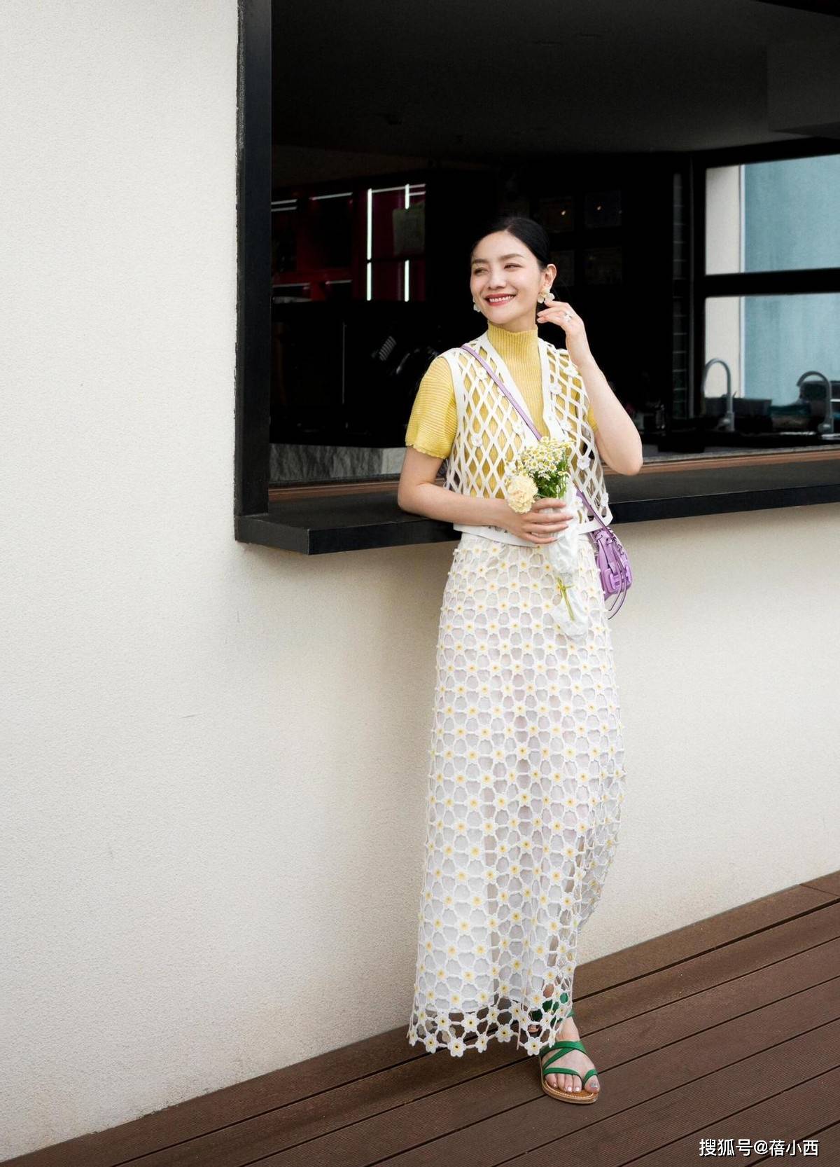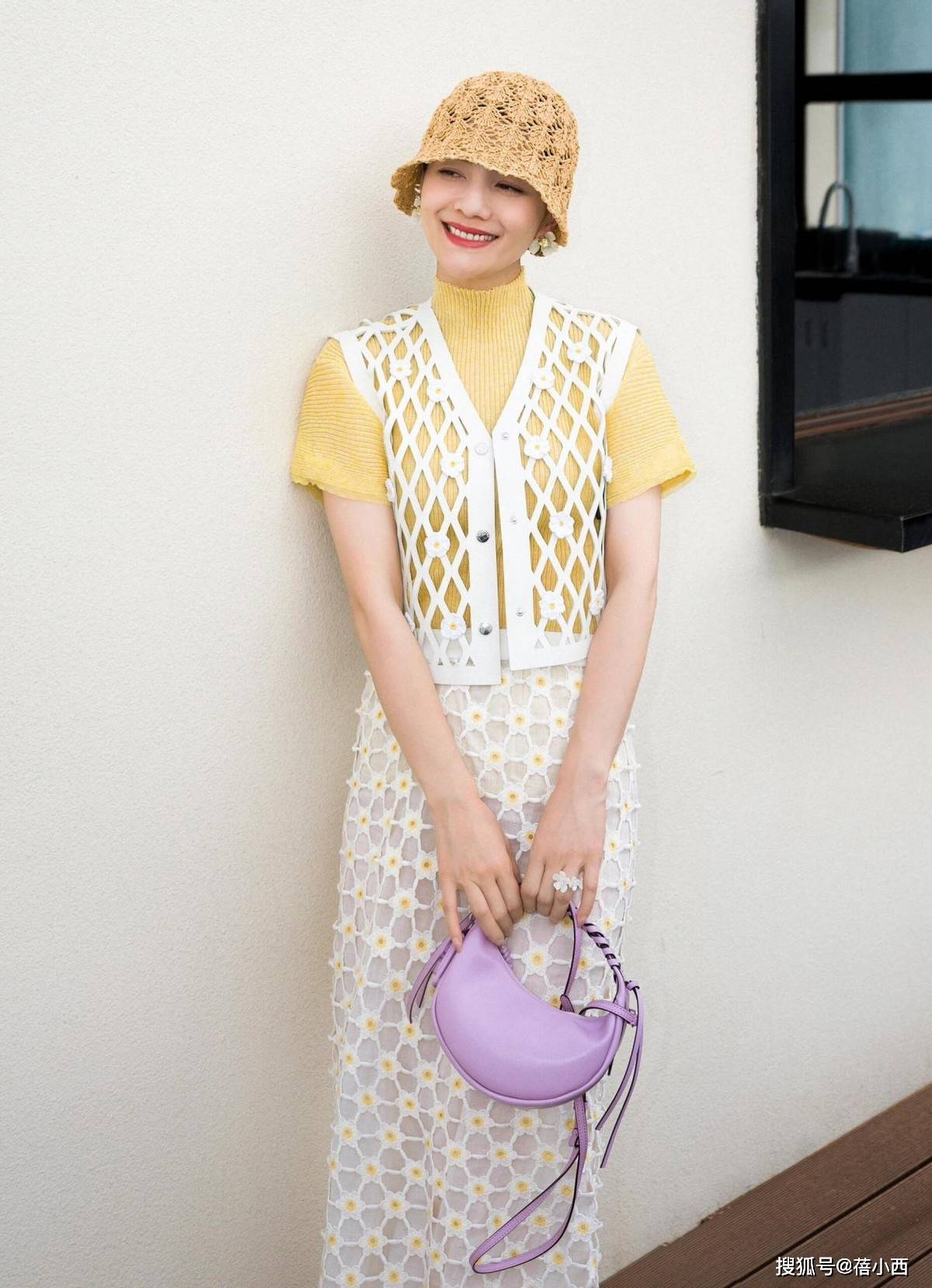 — “胡可”越老越时髦,穿针织衫+洞洞裙+小黄帽,48岁美出新高度 —