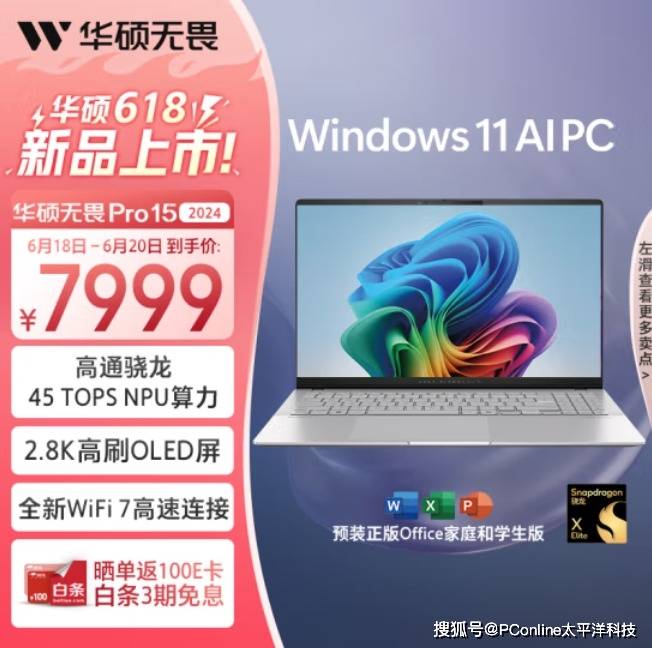 — 搭载骁龙X Elite处理器 华硕无畏Pro15 2024今日开售 —