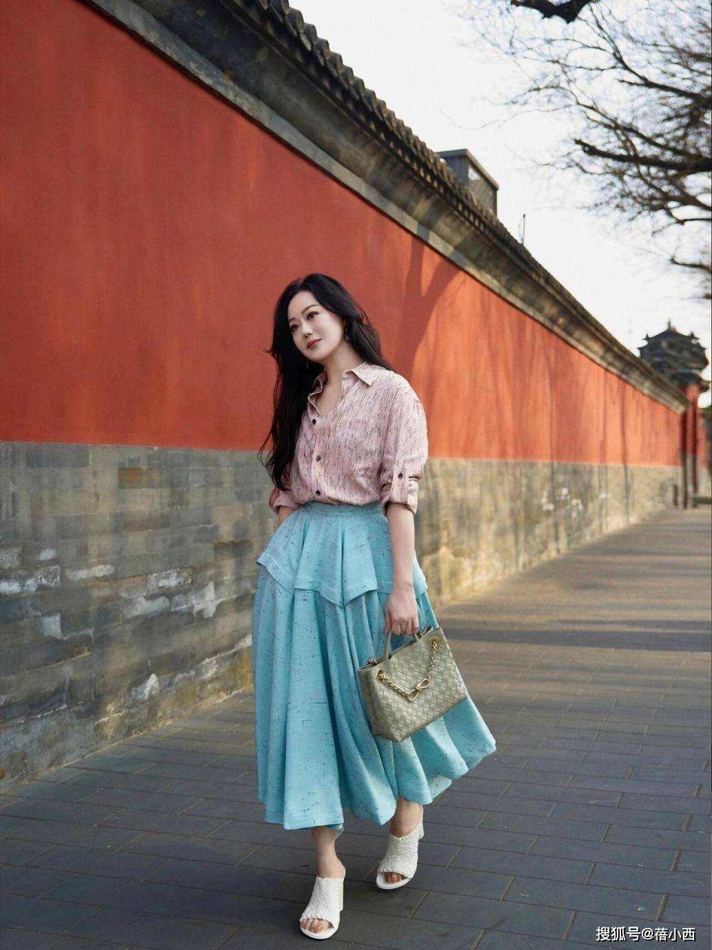 — 章小蕙去逛故宫穿得真洋气:衬衫+半身裙+穆勒鞋,61岁美出新高度 —