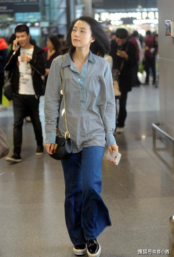 — 想不到高圆圆才是穿搭高手,休闲衬衫+牛仔裤,小肚腩都被藏起来 —