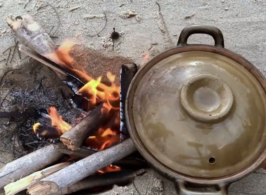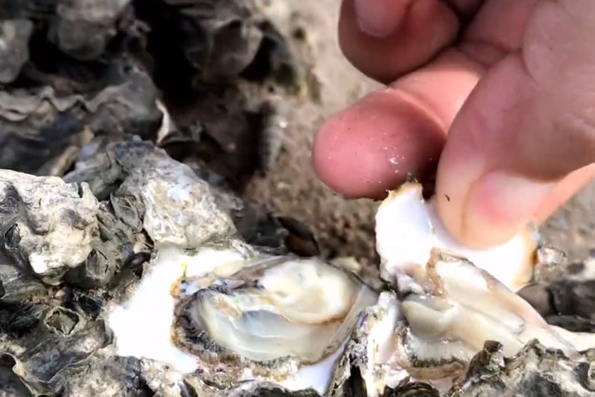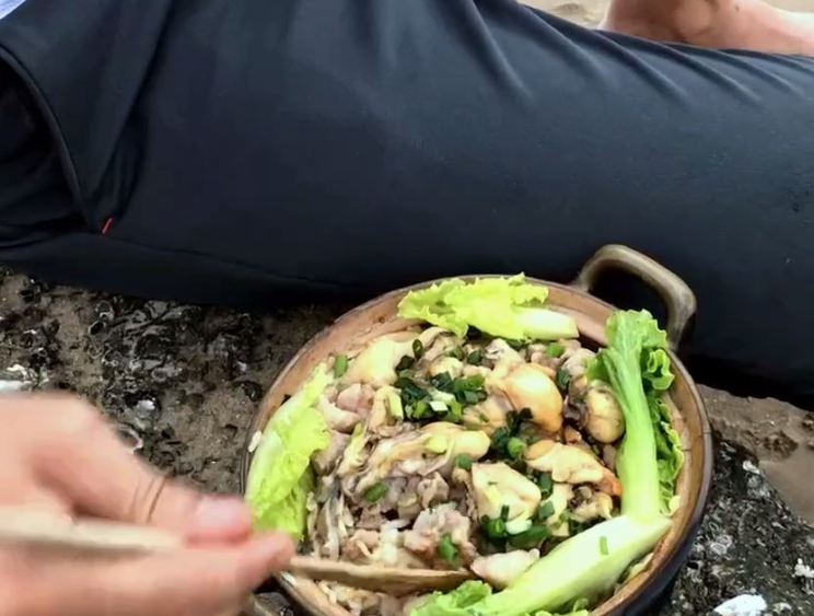 — 小伙海边现起生蚝,马上用来煮煲仔饭,光是看着就非常的美味 —
