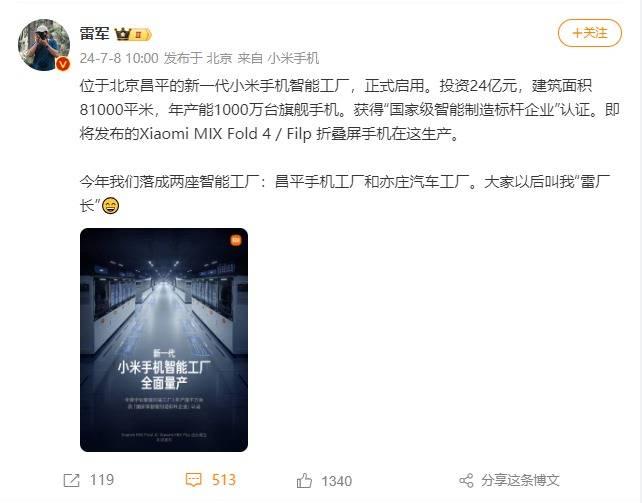 — 小米新一代智能工厂启用,年产能1000万台旗舰手机 —
