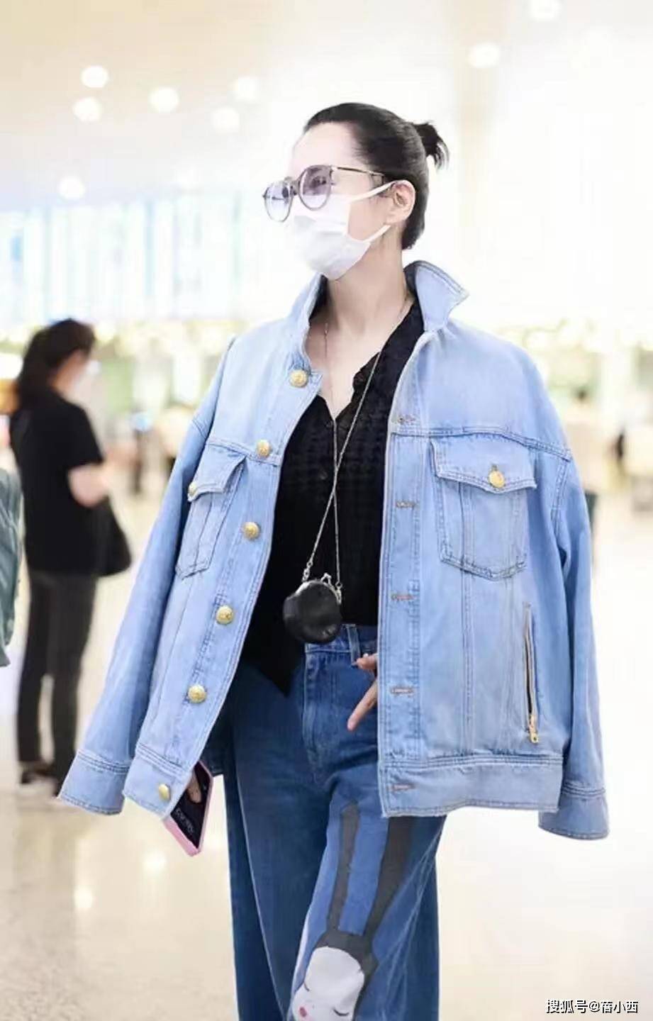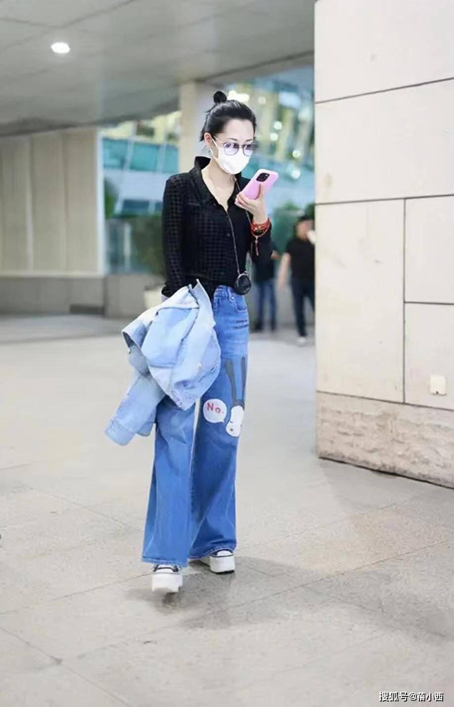 - 街拍:牛仔裤好看又百搭,搭配一字肩上衣很经典,百搭时尚