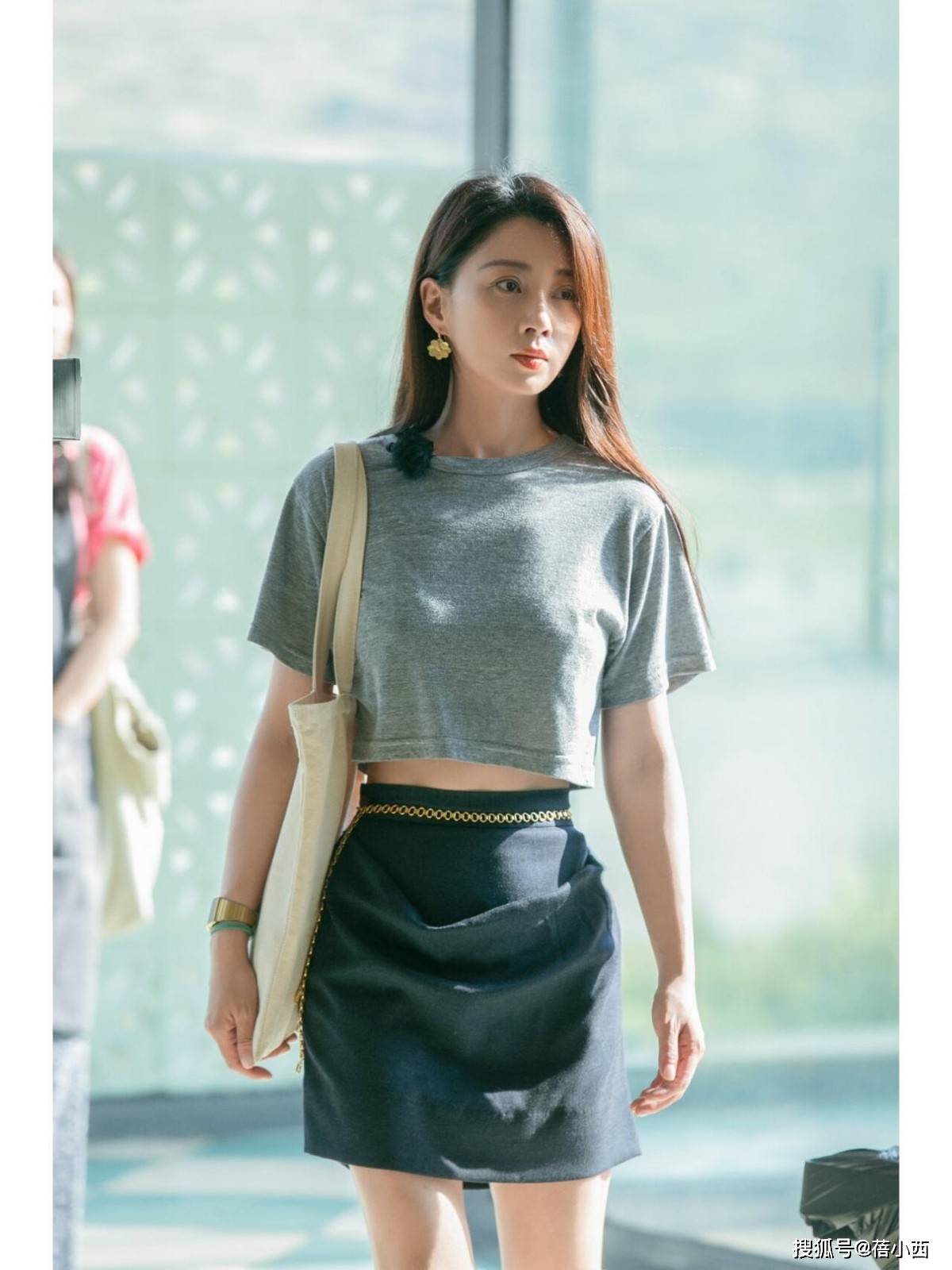 — 44岁“殷桃”越发年轻,穿“短T恤+短裙”时髦洋气,合腿坐很优雅 —