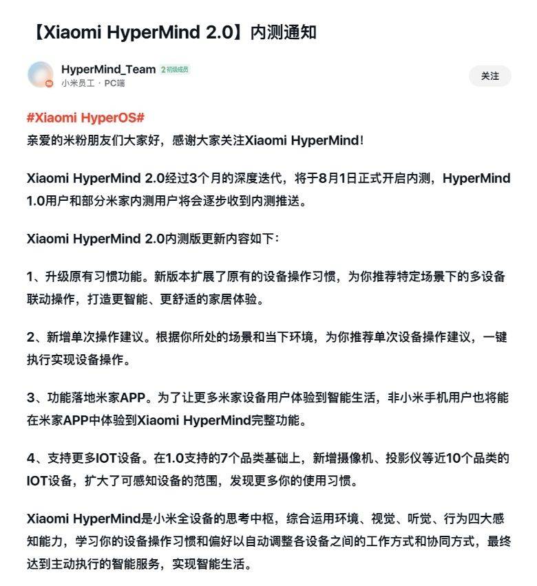 — HyperMind2.0将内测 可自动学习用户偏好主动执行智能服务 —