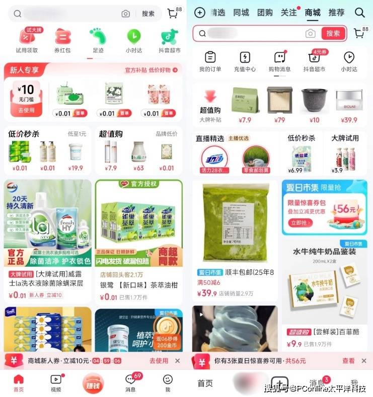 左图为抖音商城APP,右图为抖音APP