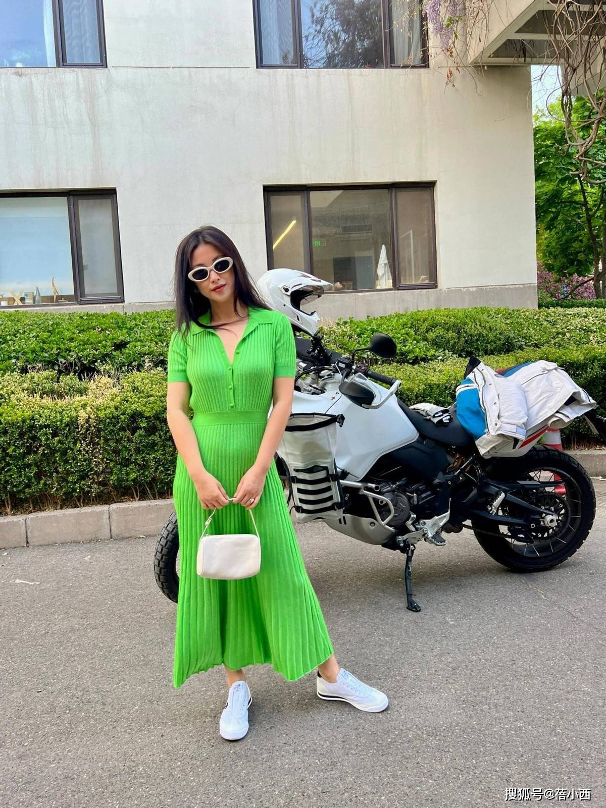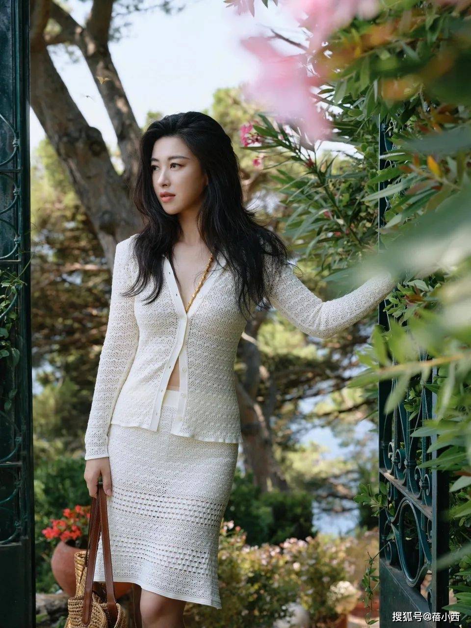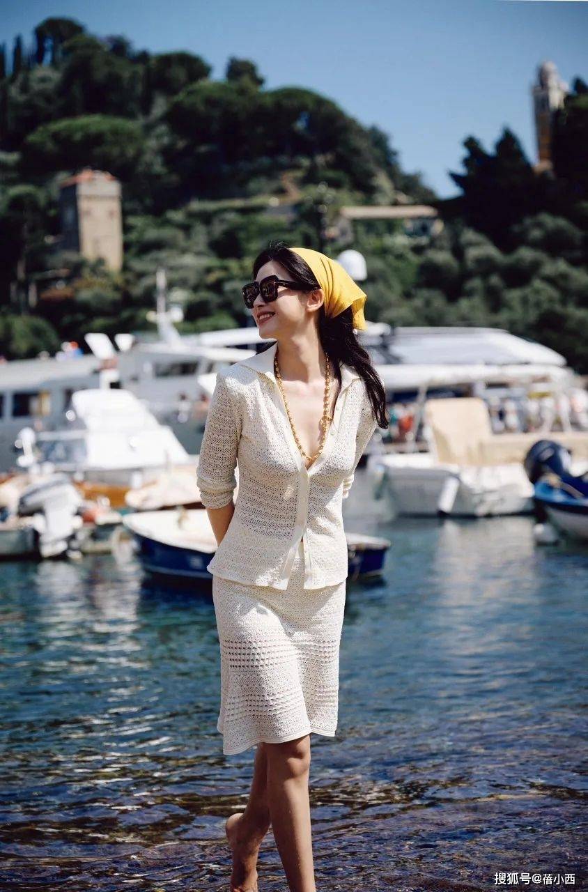 — 朱珠戴黄金项链才洋气!穿深V针织套裙度假,国风混搭还得看她 —