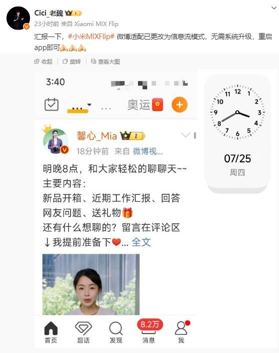 — 小米MIX Flip外屏微博模式更新:改为信息流模式 —
