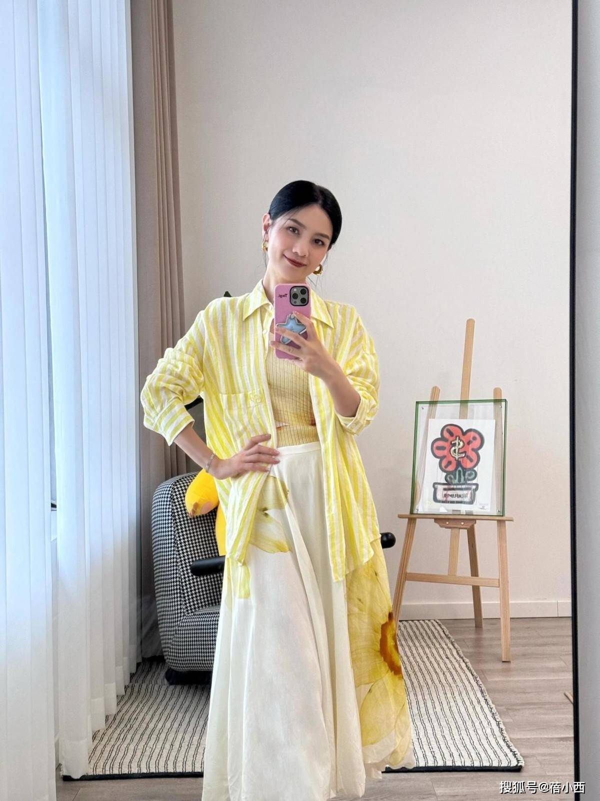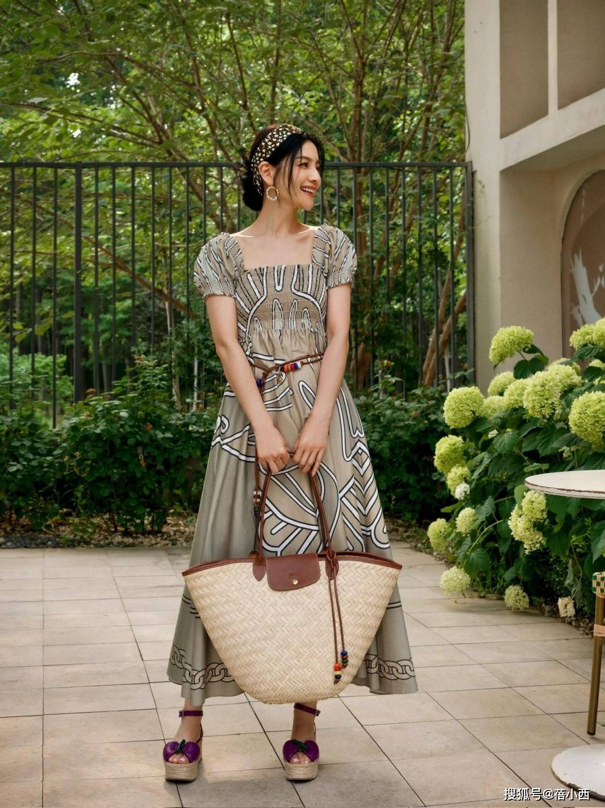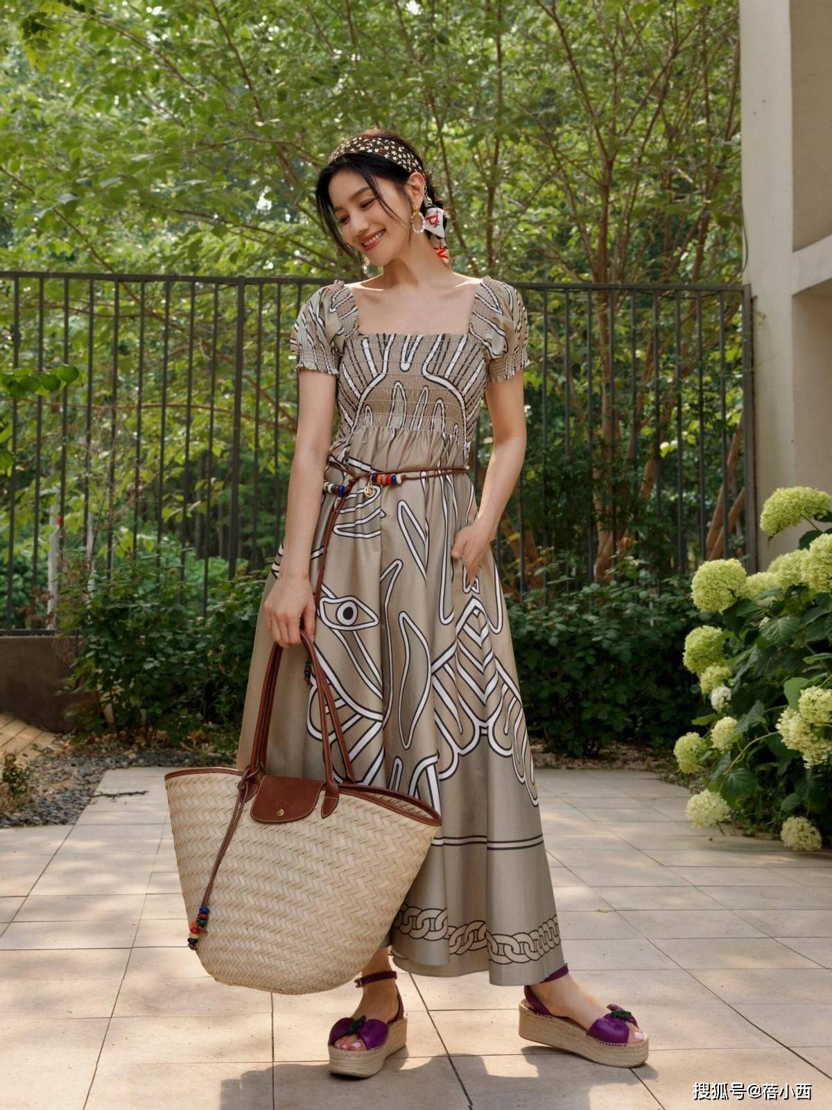 — 48岁胡可带火了70后减龄新穿法:印花裙+头巾+坡跟鞋,洋气又减龄 —