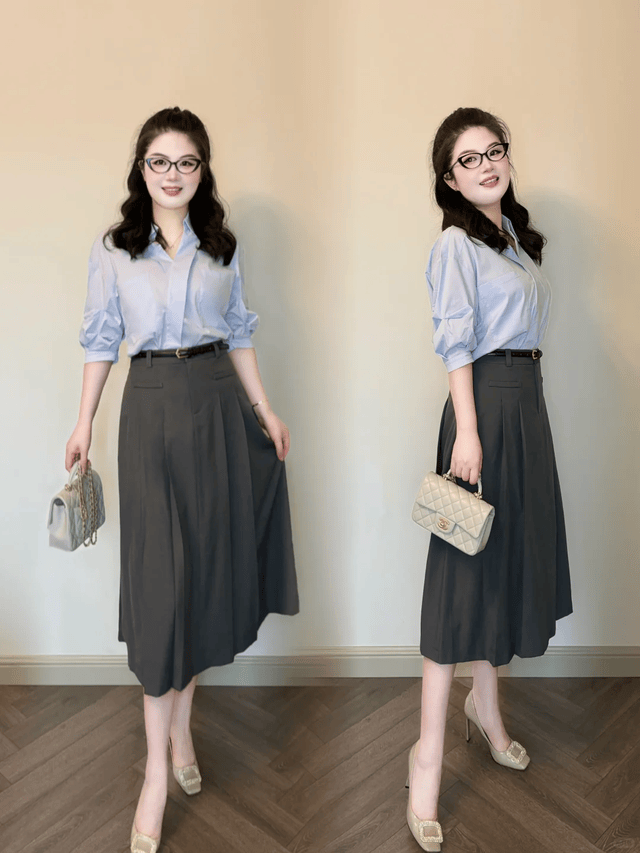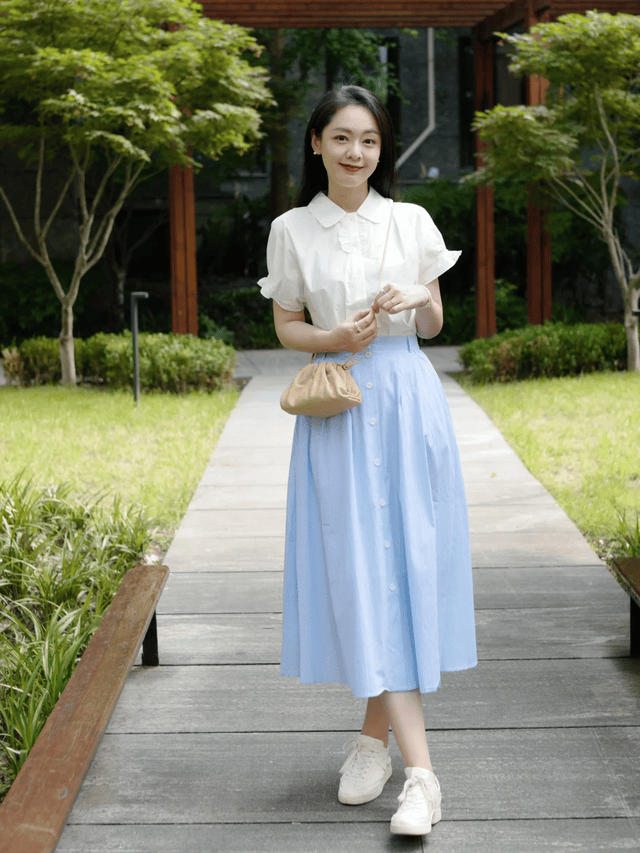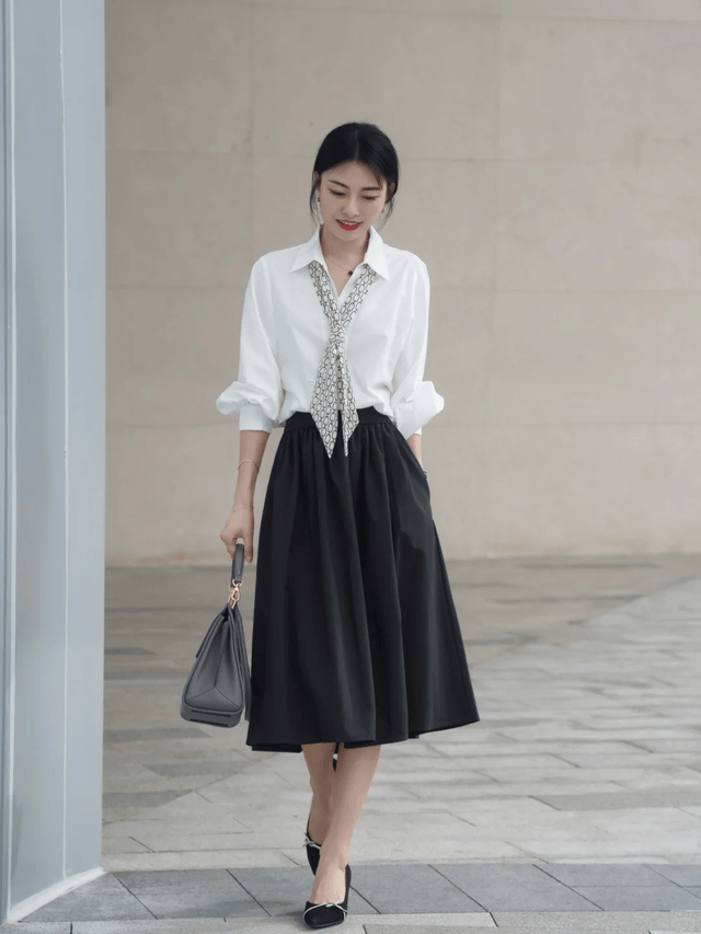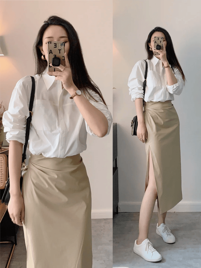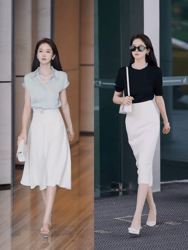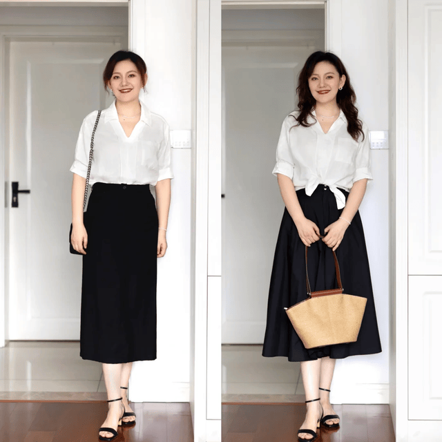 — 夏季穿搭越简约越高级,衬衫+半身裙,优雅舒适还显气质 —