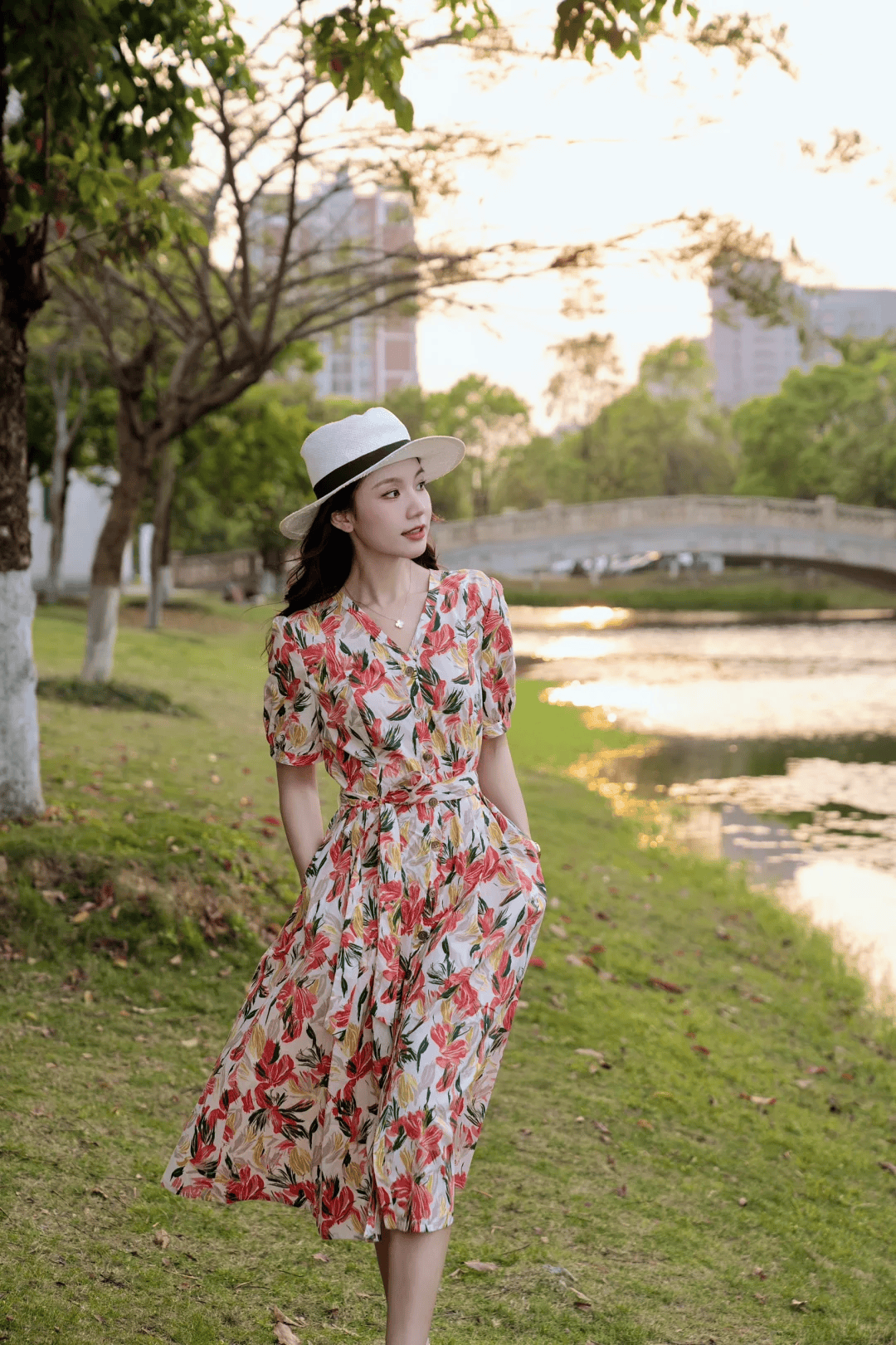 — 夏天别总穿纯色连衣裙,印花裙更清爽,遮肉显瘦还高级 —