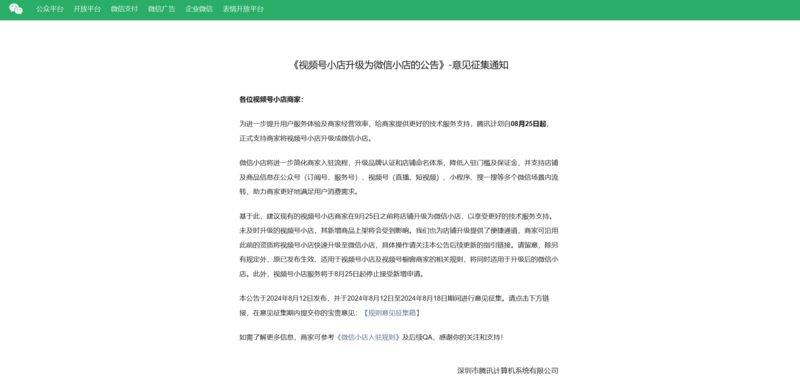— 腾讯升级视频号小店为微信小店 优化商家入驻体验 —