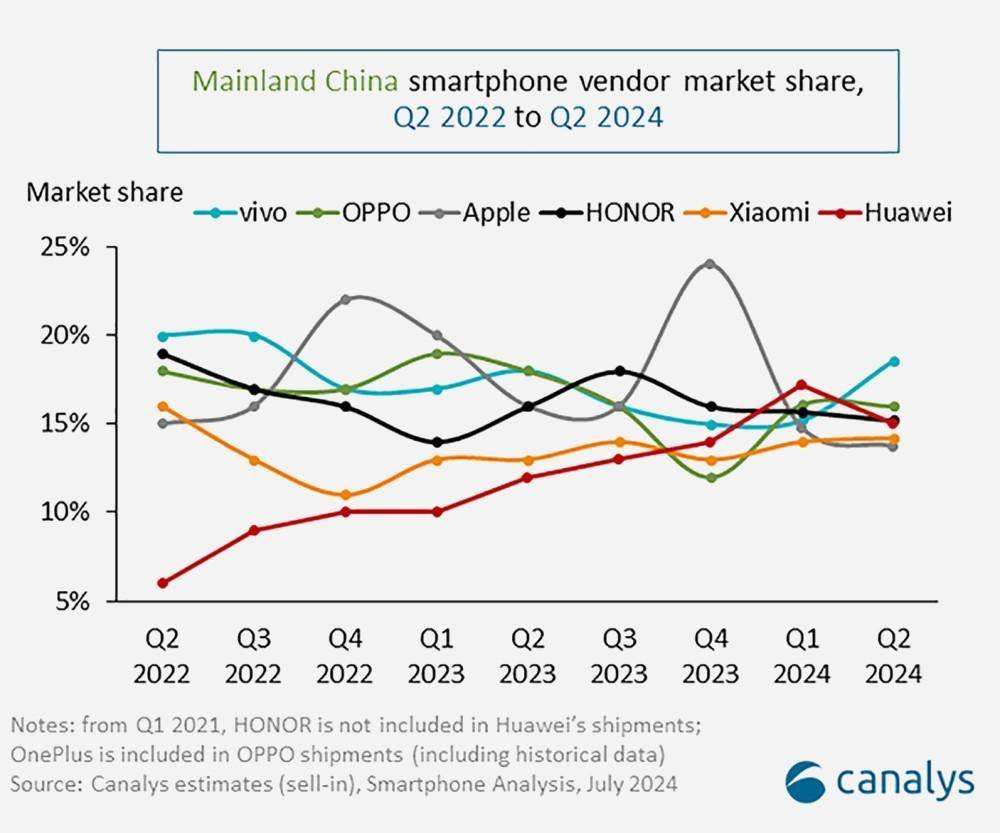 — 苹果神话不再?在第二季度,苹果跌出中国手机市场前五 —