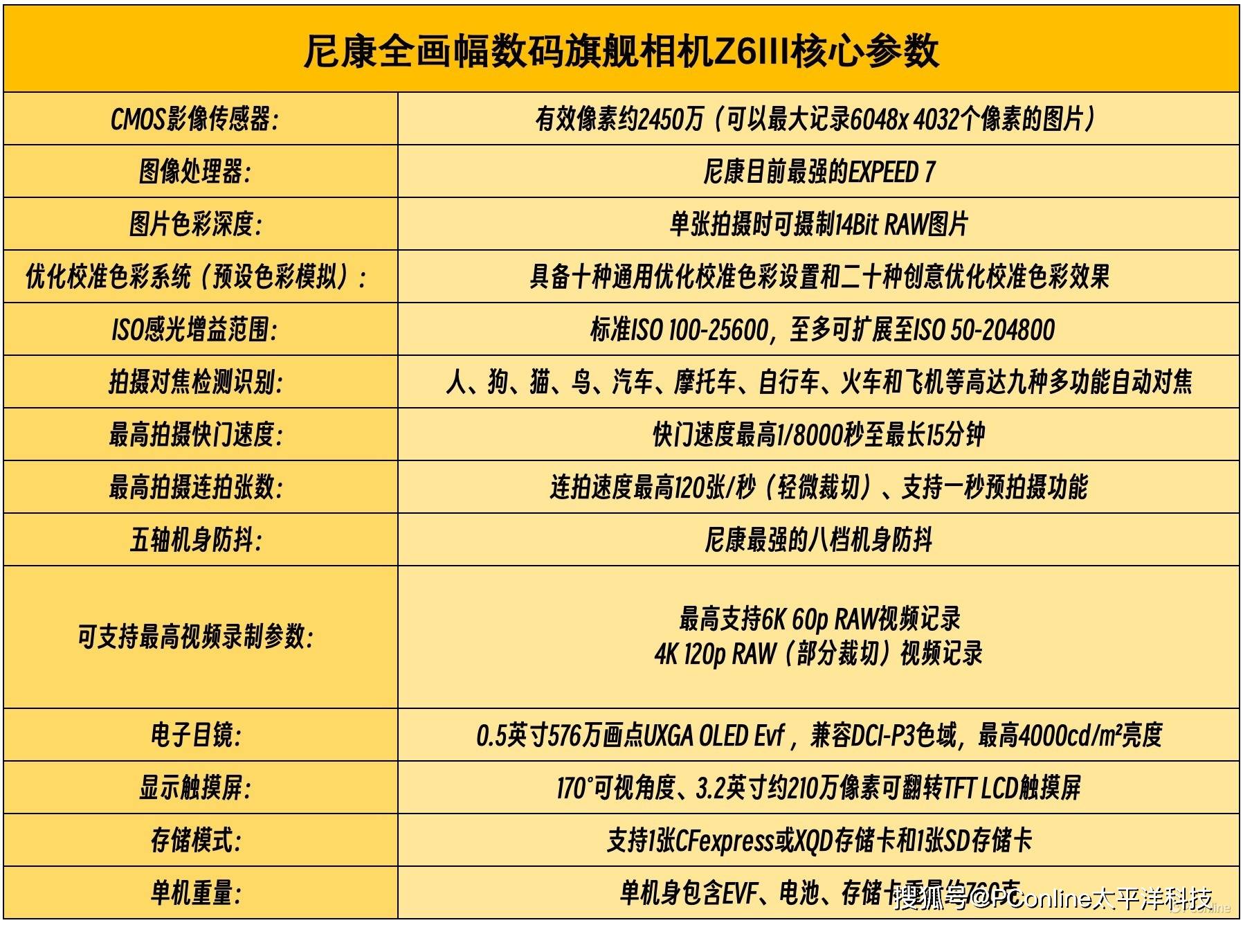 进入正式的评测前,还是先请大家和评测室一起来看看尼康Z6III的核心性能参数: