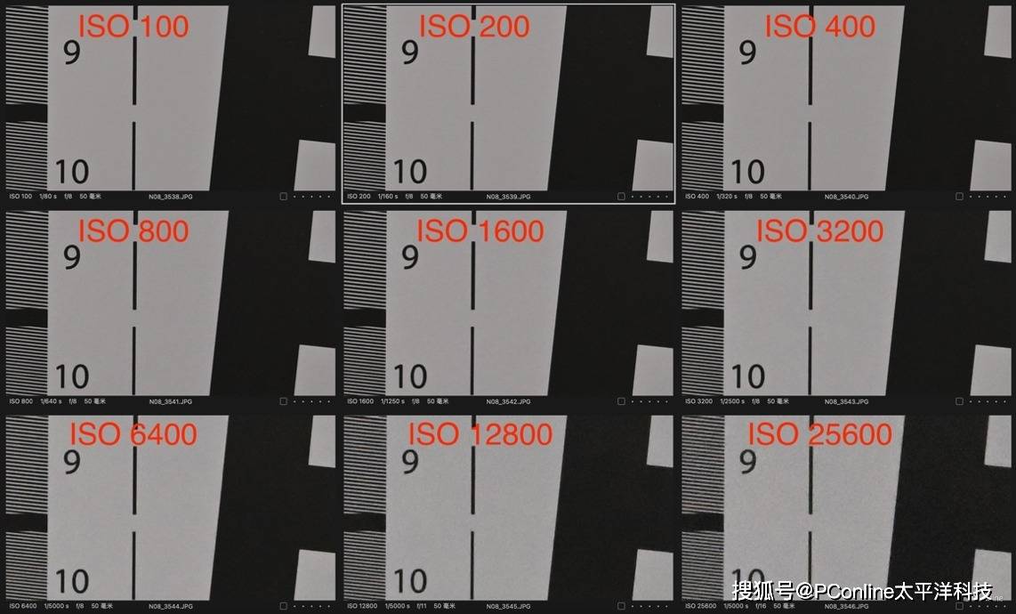 相信眼尖的朋友会看懂,曝光参数的光圈值在ISO12800-25600时出现了差异,为了避免电子模拟曝光带来可能造成的画质“污染”,这里评测室调整了光圈大小,来适配快门速度不超过1/8000秒。