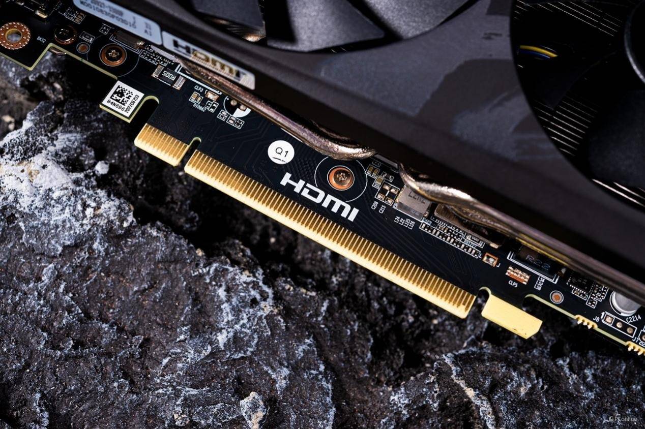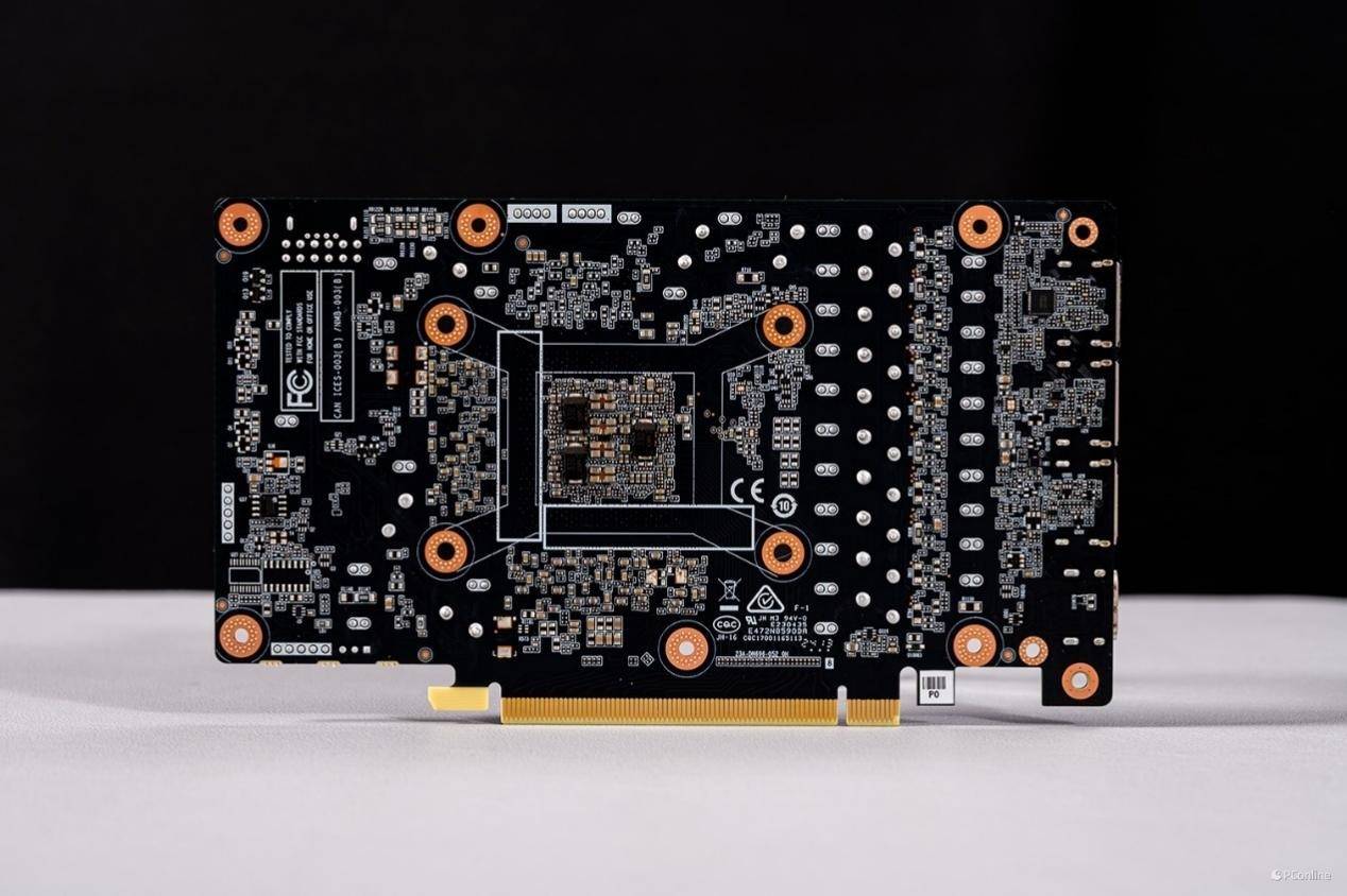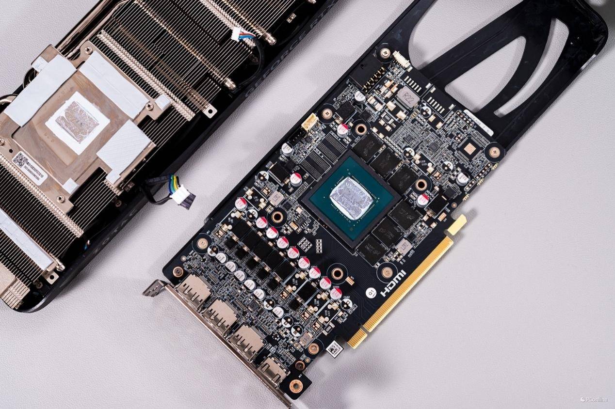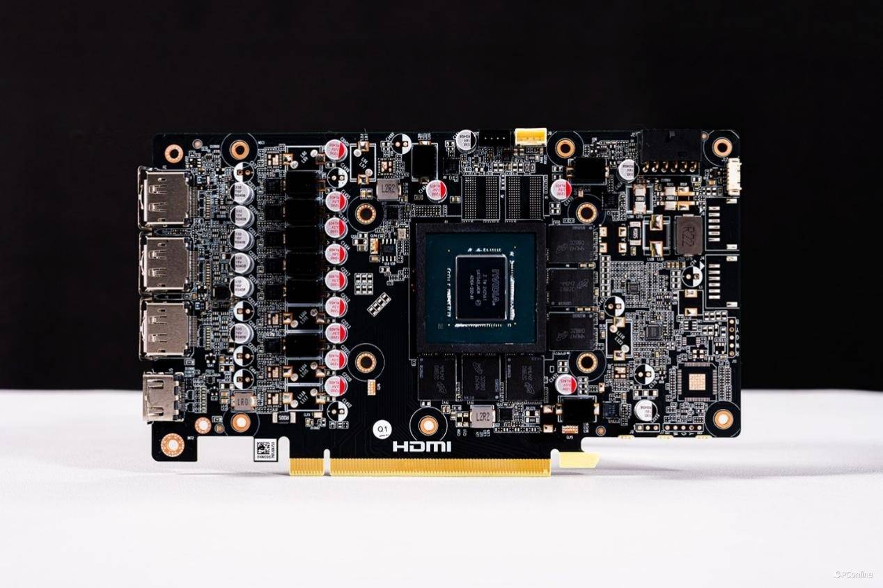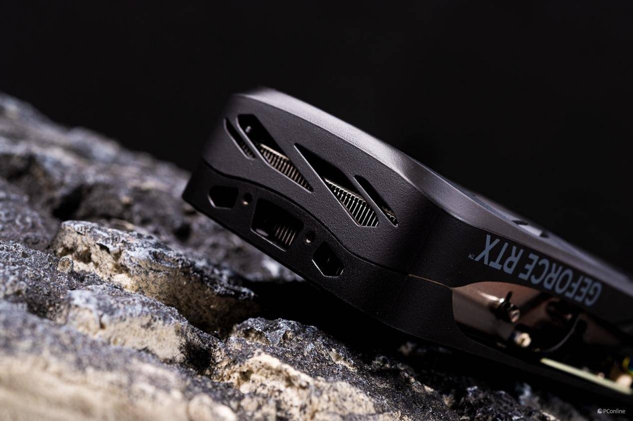 并且从这个角度看过去,其实这张显卡的体积还是非常小巧的,仅有双槽厚度,对小机箱用户极其友好。
