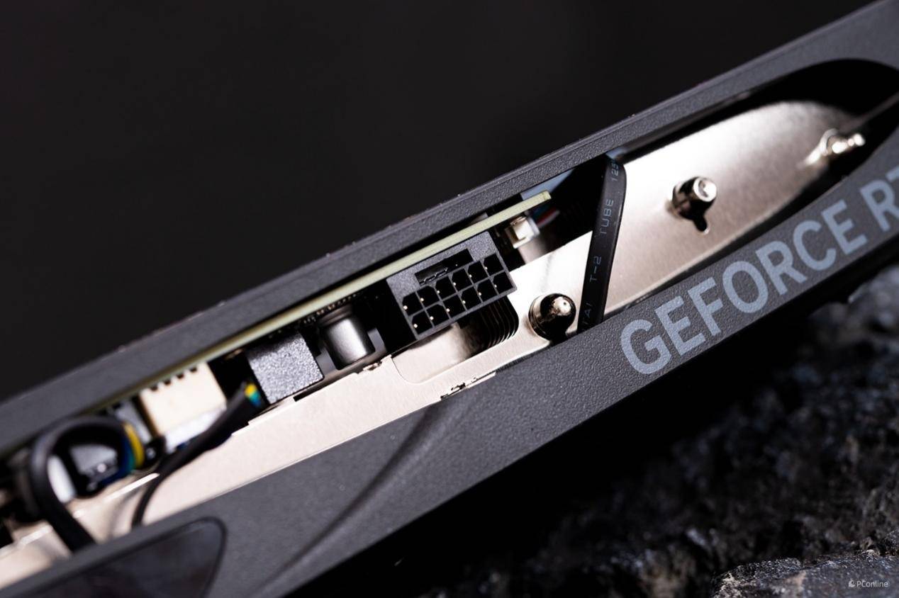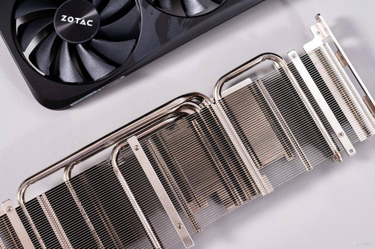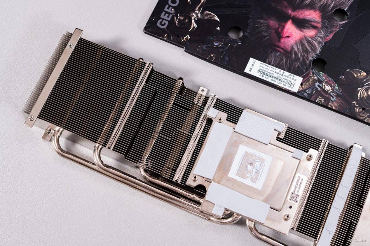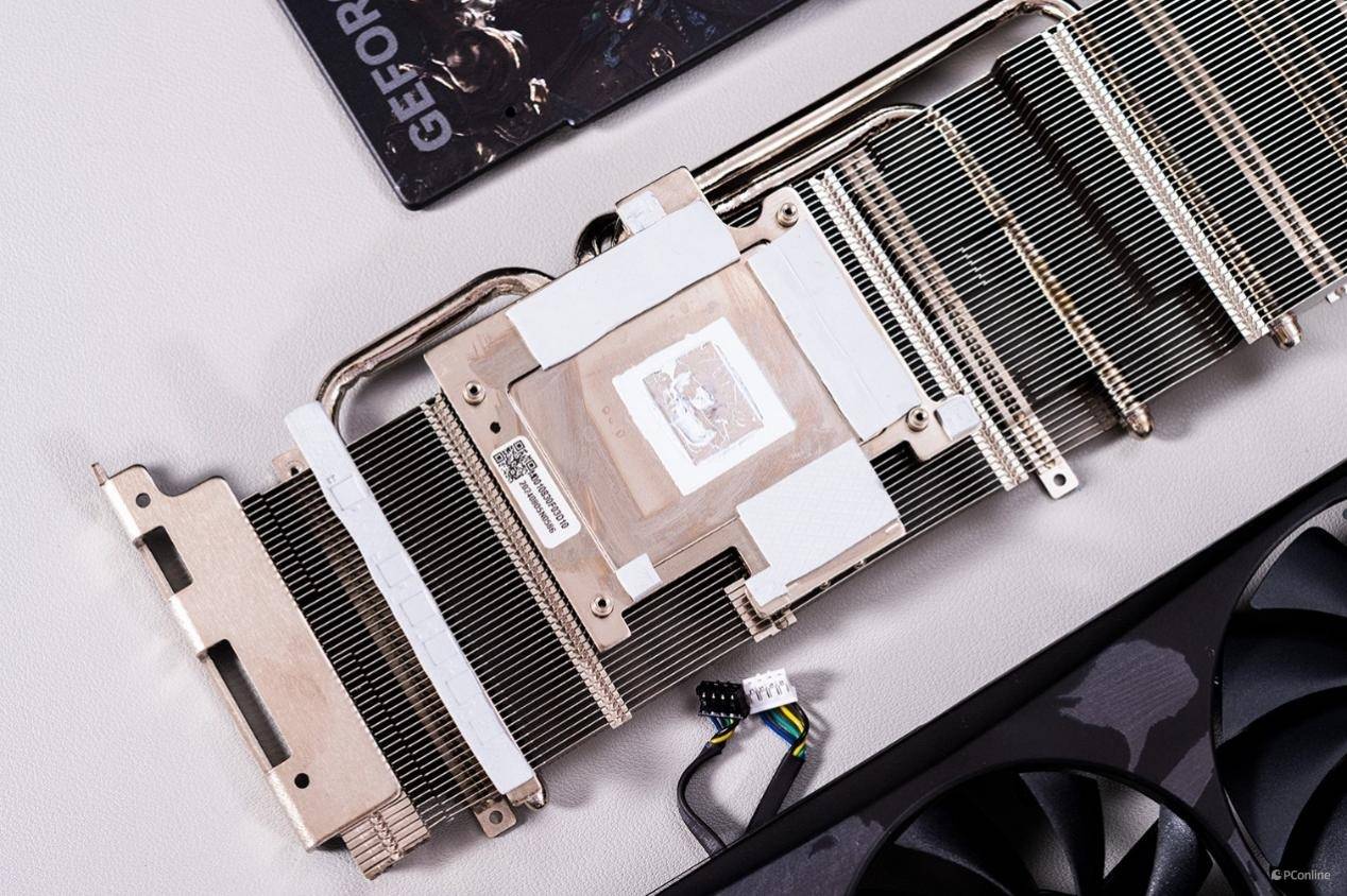 散热鳍片下是4根镀镍导热管,并且4根导热管贯穿整个散热模组,能够有效带离显卡热量。