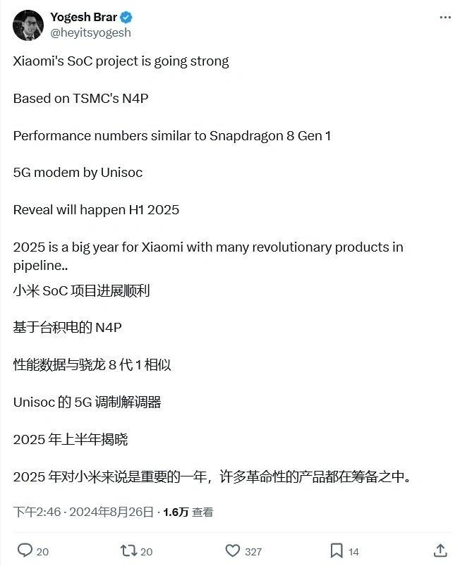 — 小米自研芯片预计2025年亮相,性能媲美第一代骁龙8系列 —