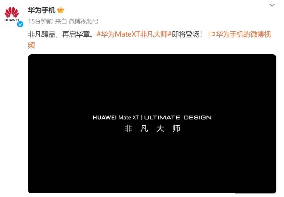 — 华为 Mate XT非凡大师官宣!或为全新三折叠屏手机 —