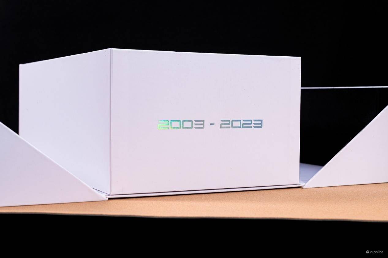 包装盒上印有20th周年字样以及2003-2023的标识,看过我们之前评测的朋友应该对这个包装不陌生,这个包装以前只在RTX 4090与RTX 4070的20周年纪念版上,可见影驰GeForce RTX 4070 Ti SUPER特别纪念版显卡非同一般。