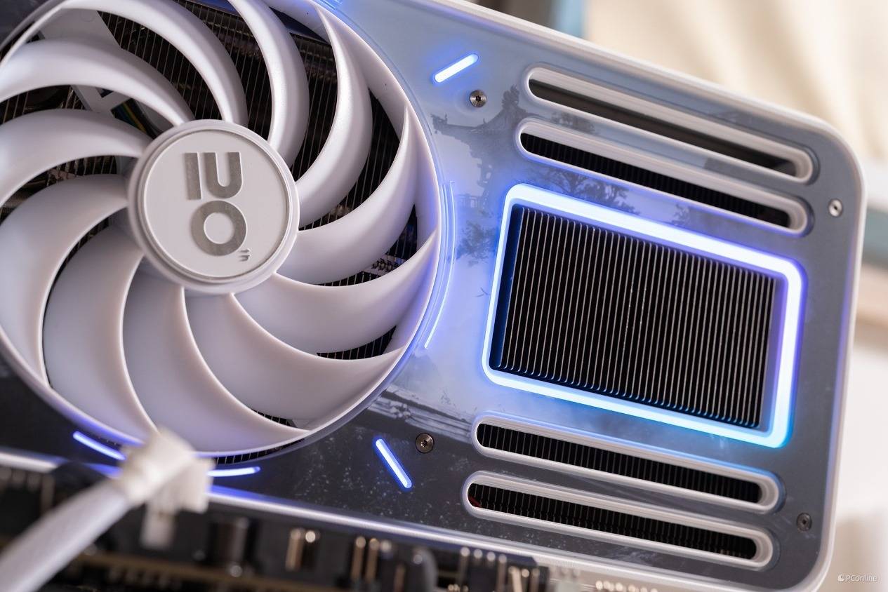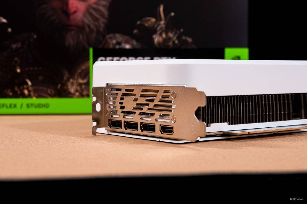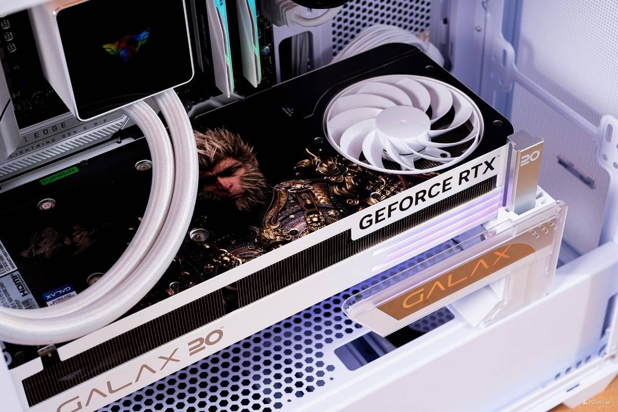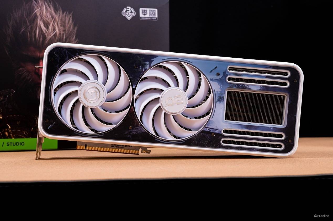 背面出彩的不仅仅是《黑神话:悟空》定制图案,还有这个独特的风扇设计,平时其他显卡都是背后开一个散热窗口,影驰则是直接把散热风扇装在背部,能够更高效的将热量排出卡外,与正面的风扇形成一个良好的循环。