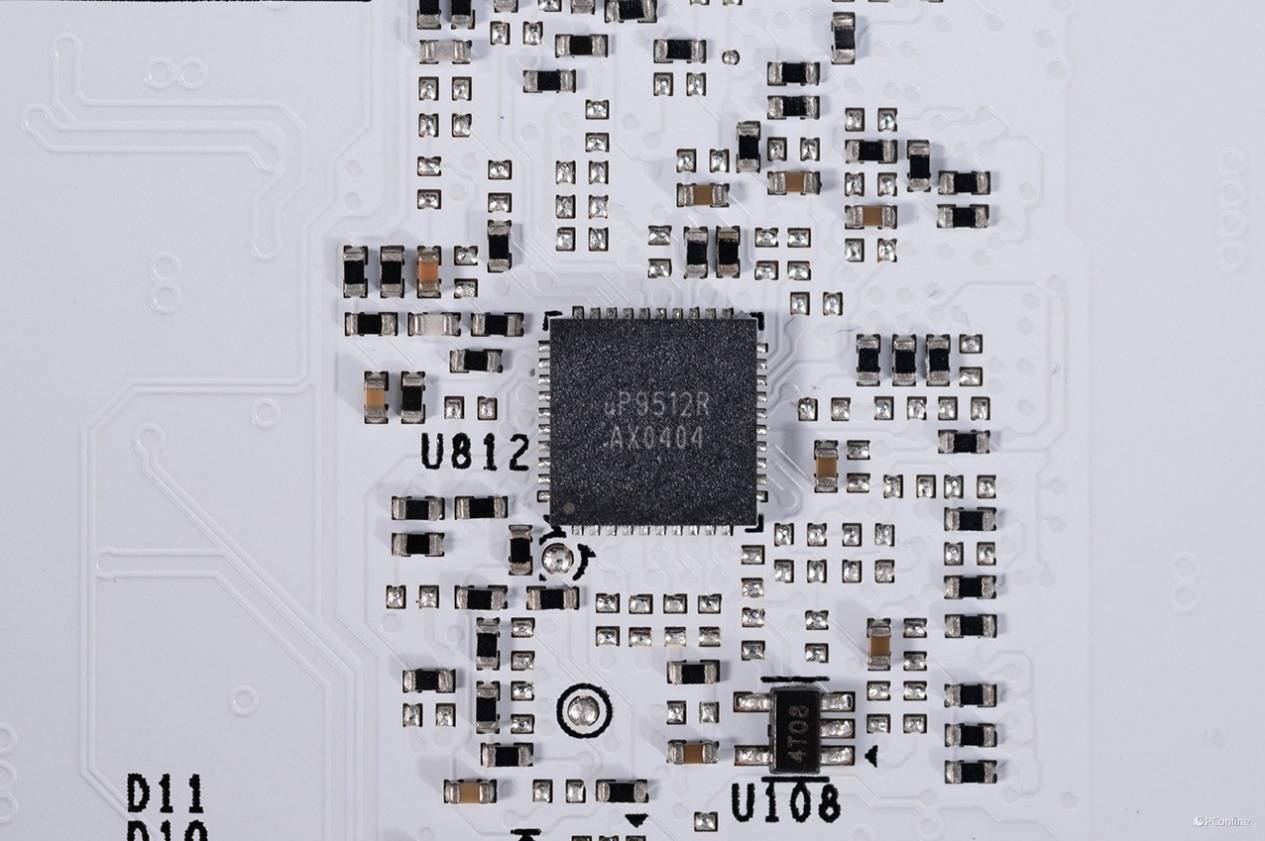 PWM芯片则都放在了PCB的背面,核心PWM为uPI uP9512U,显存PWM则为uPI uP9512R。