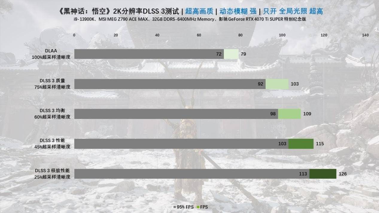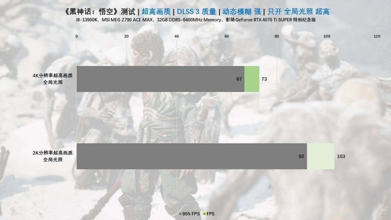 实测数据看上面就知道了,影驰GeForce RTX 4070 Ti SUPER特别纪念版显卡的表现还是相当可观的,16GB的超大显存配合DLSS 3帧生成技术已经能够畅玩2K光追的《黑神话:悟空》完全没有问题。如果是光栅化的情况,那2K甚至可以跑到103 FPS,已经接近电竞高刷的水准了。