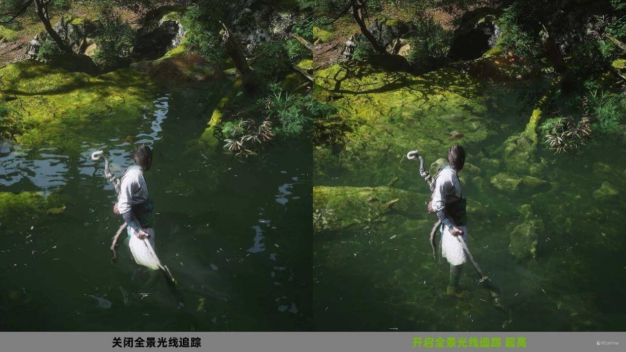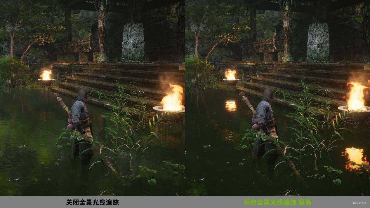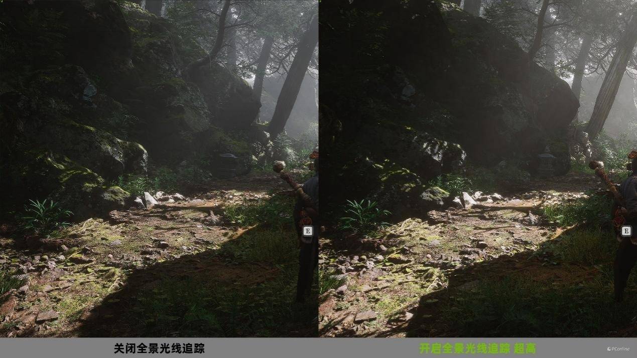 除了上面介绍的这些,《黑神话:悟空》中还有一项非常吃性能的设置,那就是NVIDIA全景光线追踪功能,不过开启它你将收获更惊艳的画质表现。相比起前面提到的全局光照,NVIDIA全景光线追踪的效果会更准确,也更符合真实光线的特性。