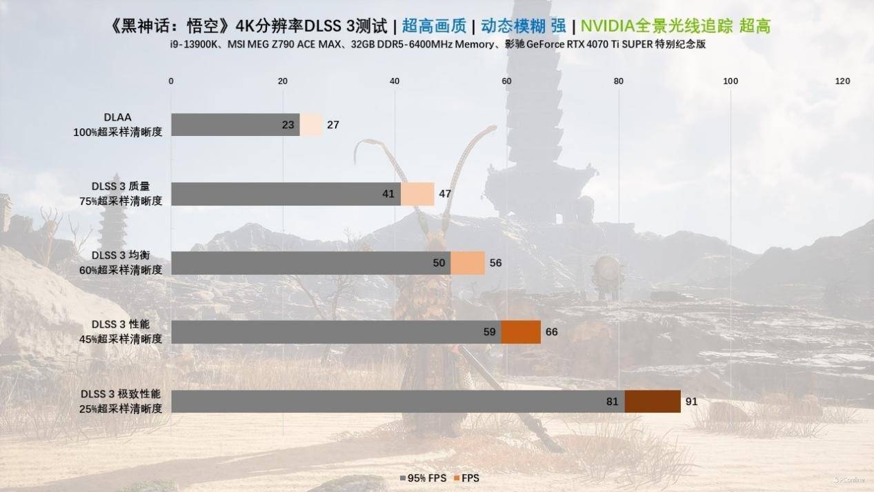 实测下来,《黑神话:悟空》对性能要求还是不低的,特别是当开启全景光线追踪以后,画面效果惊艳,但也需要显卡的强力输出去支持。不过你可以永远相信影驰GeForce RTX 4070 Ti SUPER特别纪念版显卡的性能!实测开启DLSS 3黑科技以后,这张显卡甚至可以征服4K光追游戏!还是在超高的预设之下,依旧能够做到4K@60 FPS畅玩,应对其他3A大作更是手拿把掐,犹如天命人手中的“神兵利器”,让你轻松驰骋在游戏世界。
