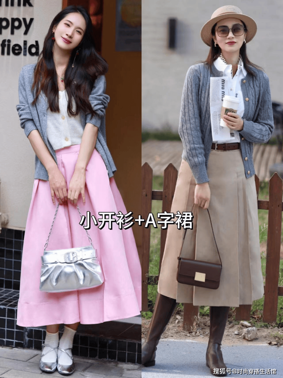 — 今秋火了一种穿搭:叫“小开衫+半裙”,洋气显高,特适合小个子 —