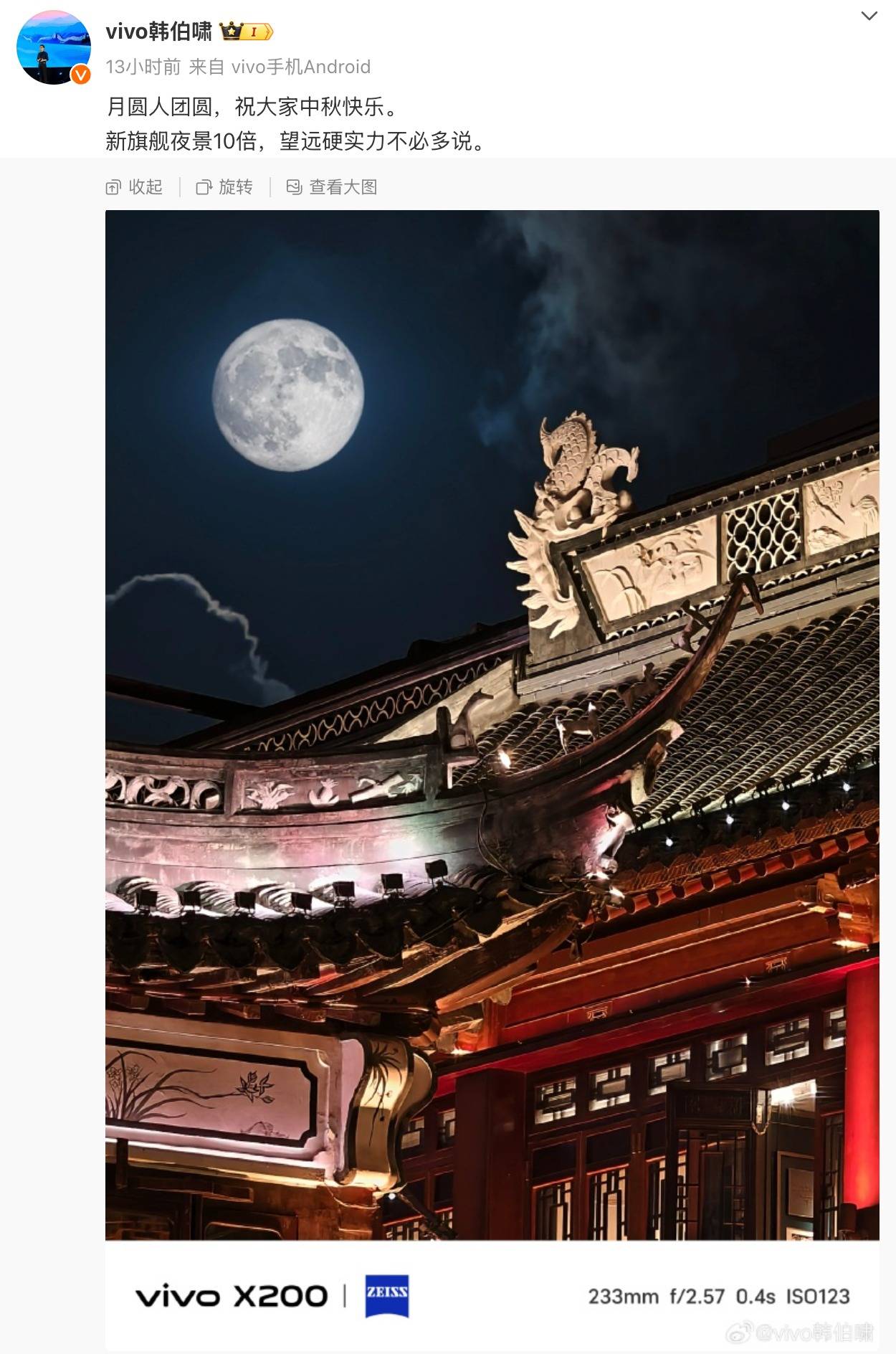 — vivo X200标准版也很顶!vivo韩伯啸晒出10倍夜景样张 —
