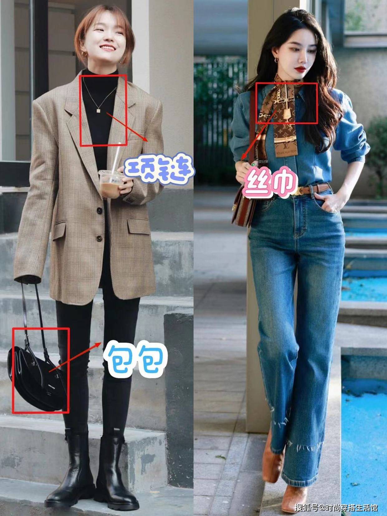 - 街拍:牛仔裤好看又百搭,搭配一字肩上衣很经典,百搭时尚