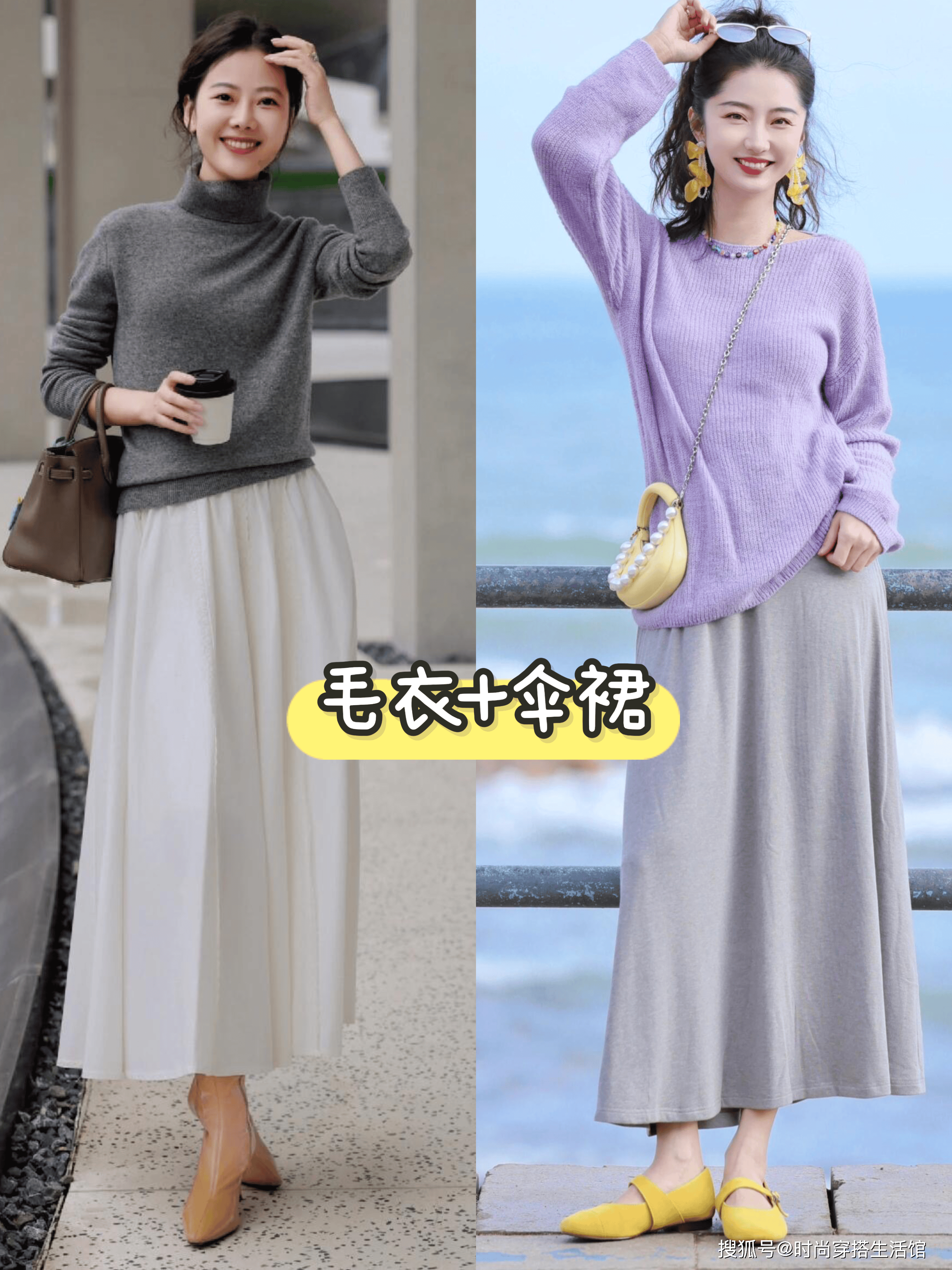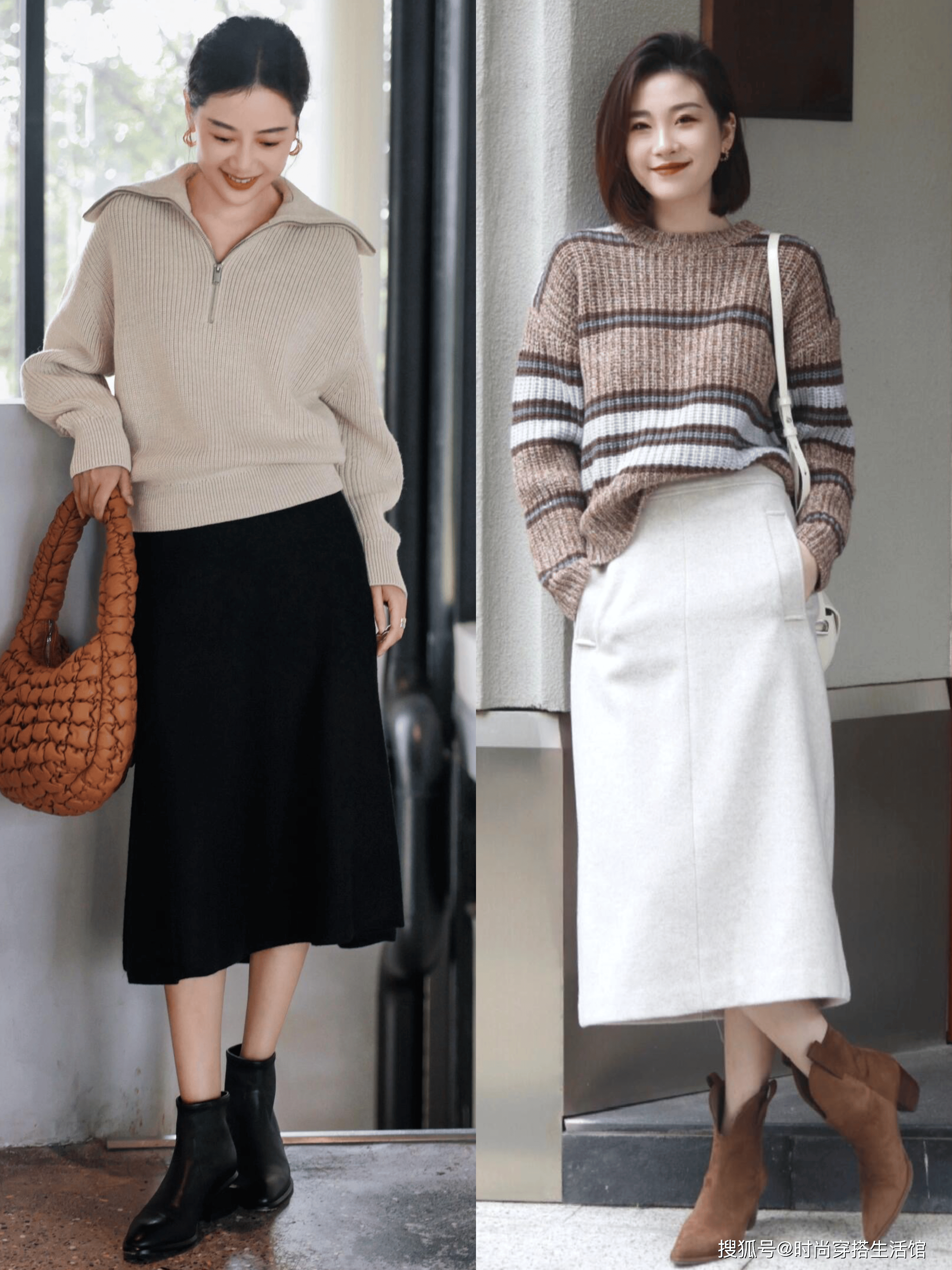 — 今秋火了一种穿搭:叫“毛衣+半身裙”,优雅显高,适合小个子穿 —